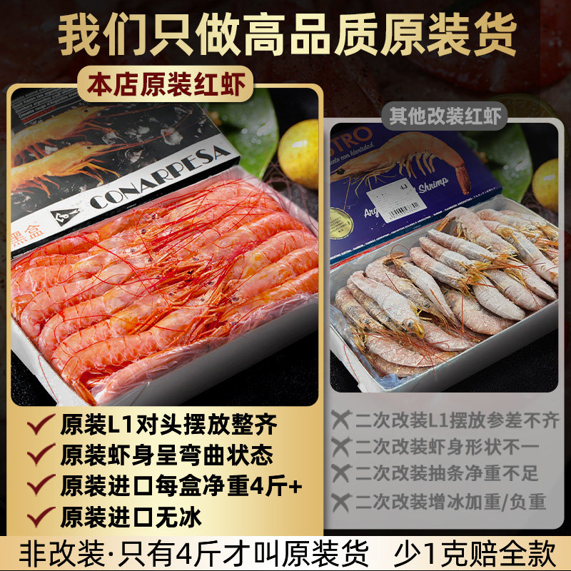 阿根廷大红虾l1进口超大特大新鲜冷冻红虾海鲜水产船冻虾4斤黑盒
