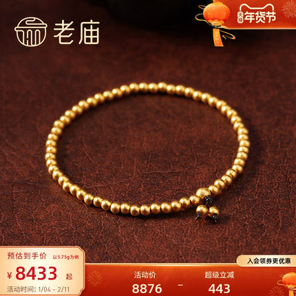 老庙黄金足金手链古韵金好运手串串珠手链女转运珠哑光/计价正品