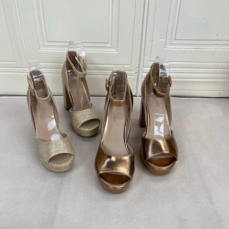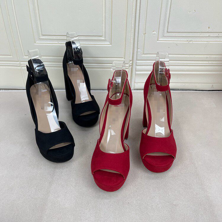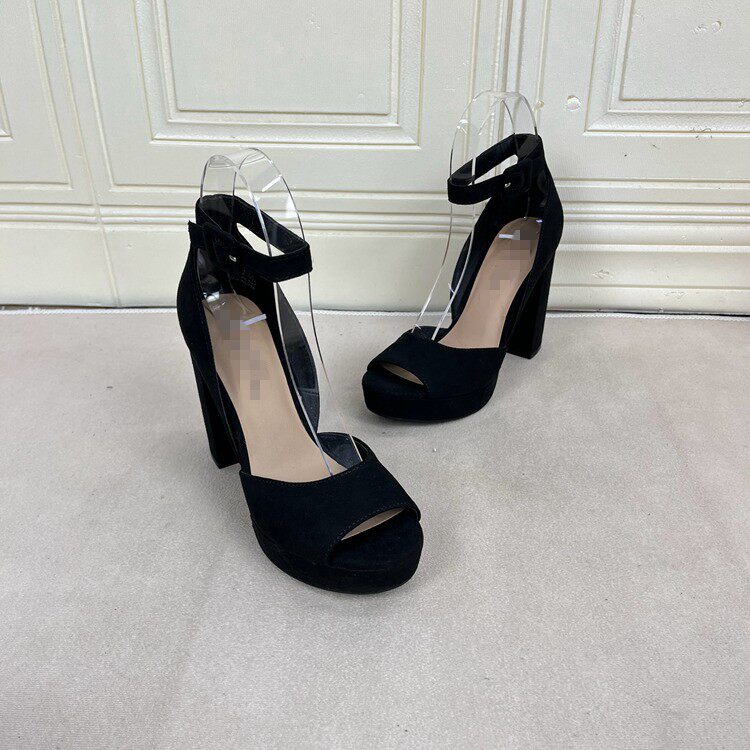 Lady Shoes外贸原单女鞋时尚圆头纯色粗高跟防水台一字扣时装凉鞋