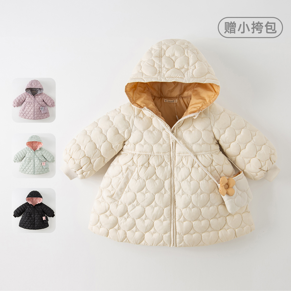 【清仓特价】戴维贝拉女童中长款羽绒服冬季小童宝宝连帽保暖外套