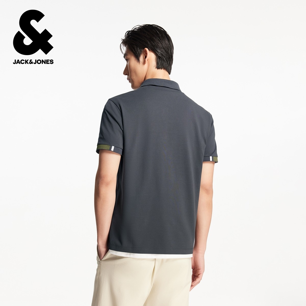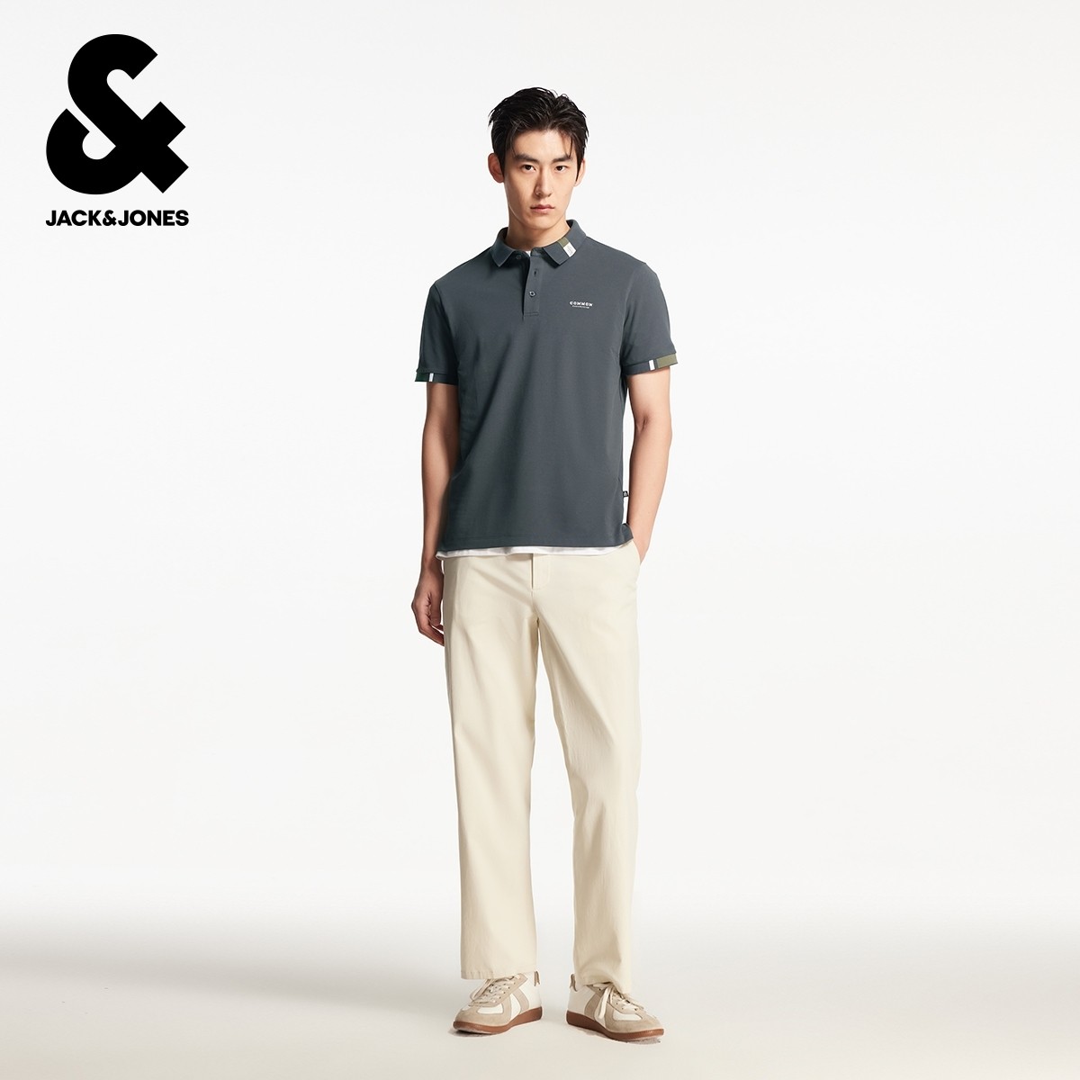 绫致杰克琼斯男夏季刺绣舒适清爽短袖上衣翻领T恤直筒polo衫