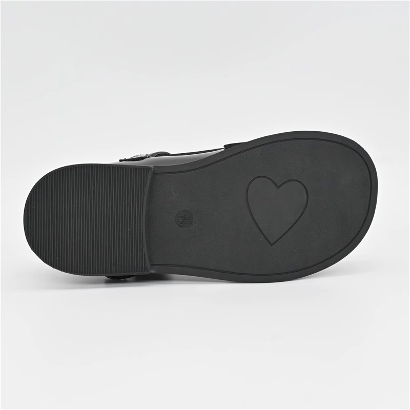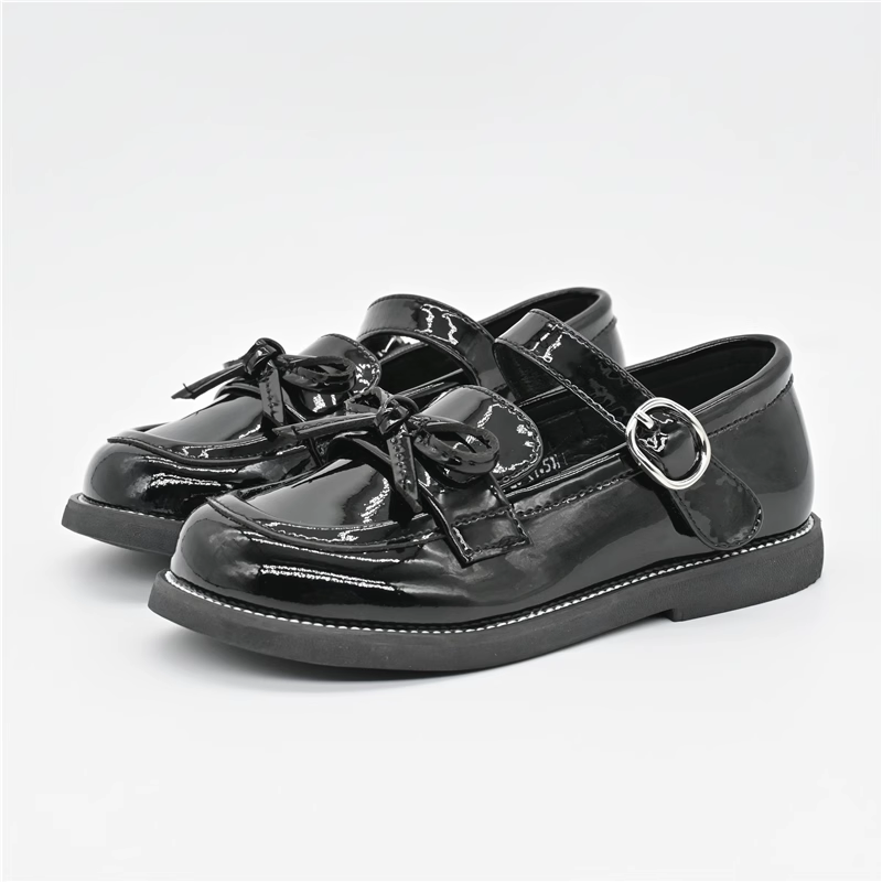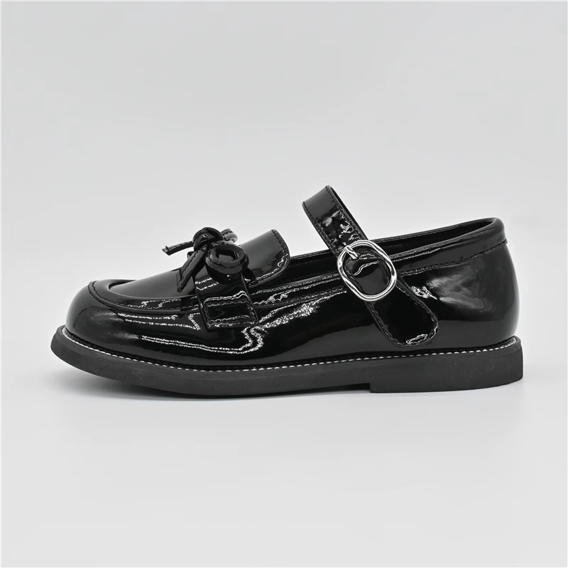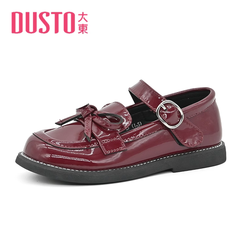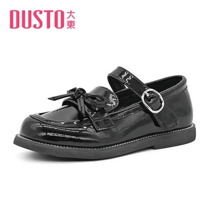 大东23秋款新款圆头魔术贴女孩黑皮鞋女童公主鞋蝴蝶结23Q1211