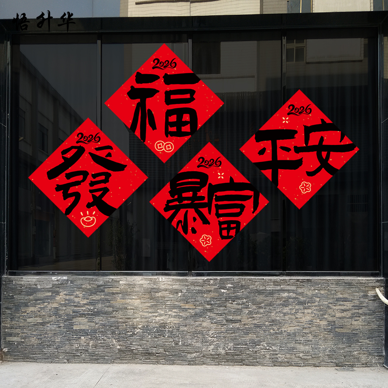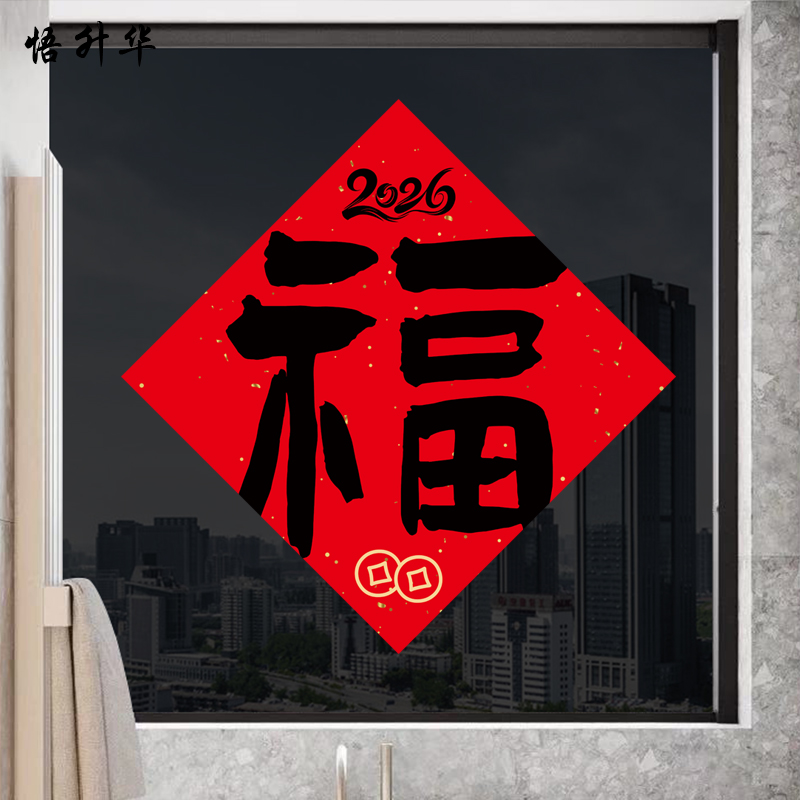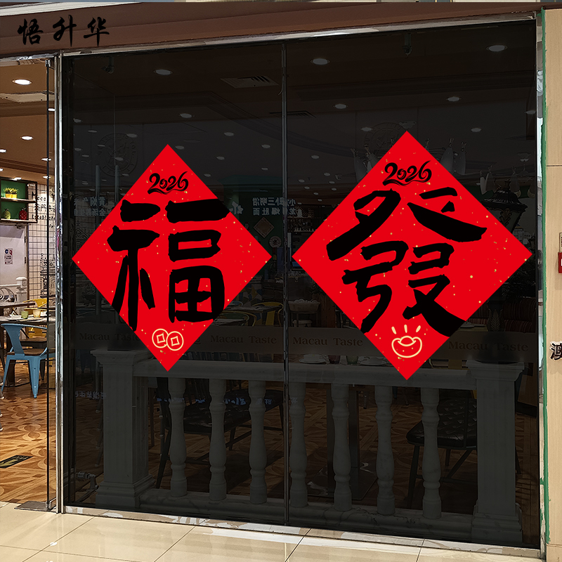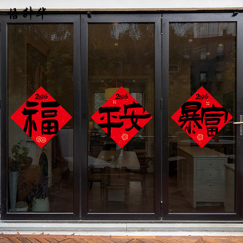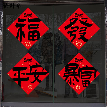 马年春节贴纸店铺玻璃门橱窗静电贴画2026新年福字装饰窗花贴纸