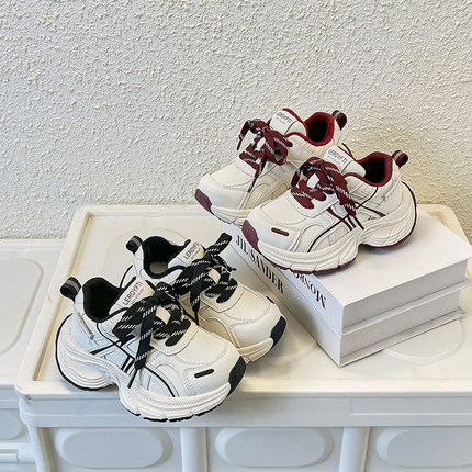 儿童厚底防滑老爹鞋男女童2025秋冬新款百搭轻便休闲加绒运动鞋子