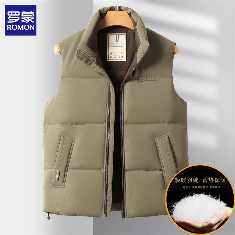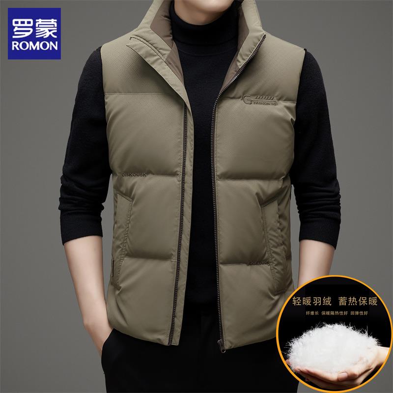 罗蒙男士白鸭绒马甲秋冬新款保暖休闲立领坎肩百搭羽绒服背心外套