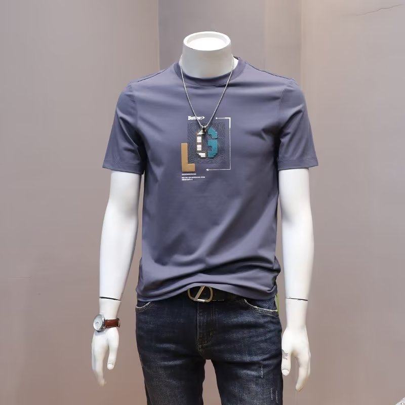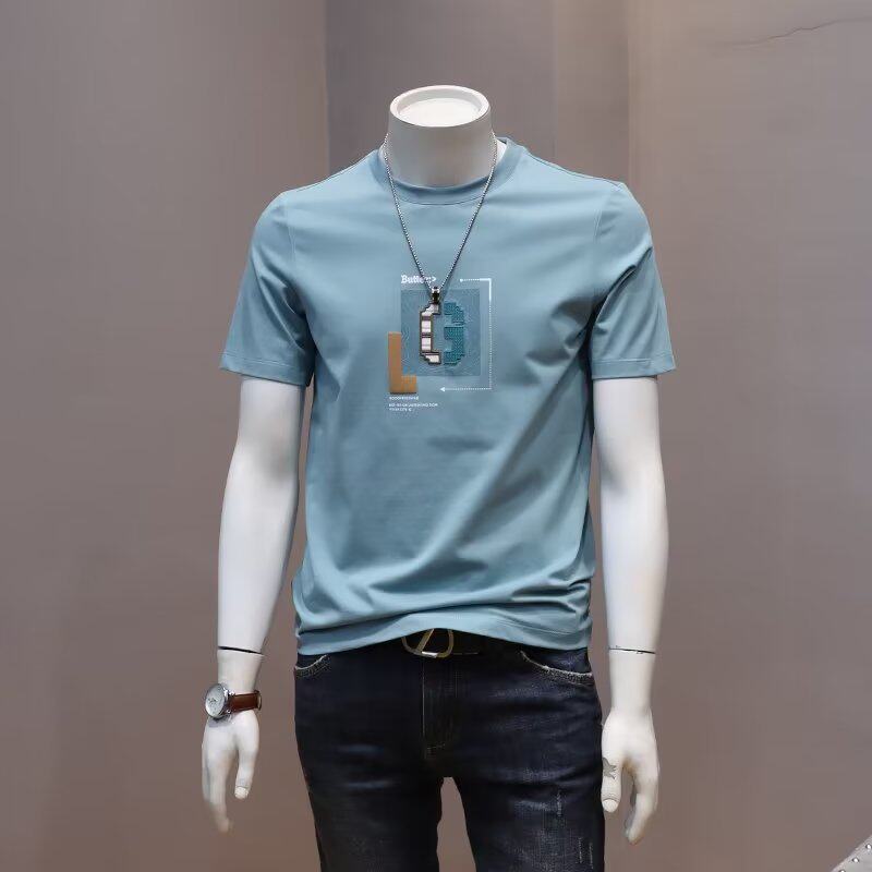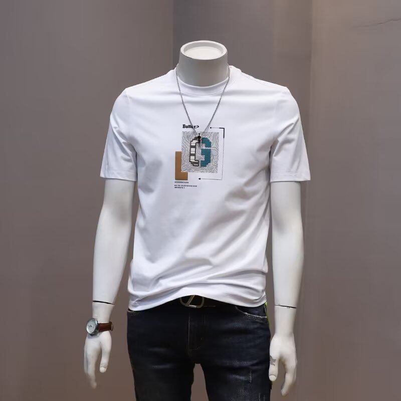 时尚简约T恤男丝光棉短袖大码潮