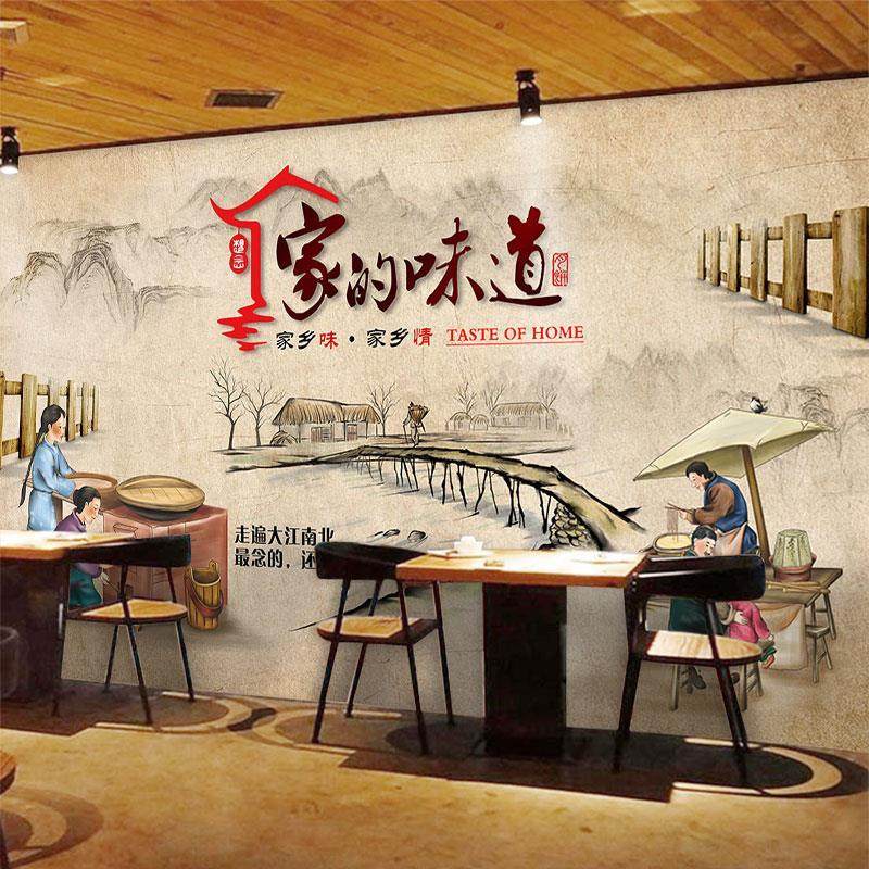 农家乐农村饭店墙纸家的味道中式壁纸餐饮土菜馆火锅店背景墙布
