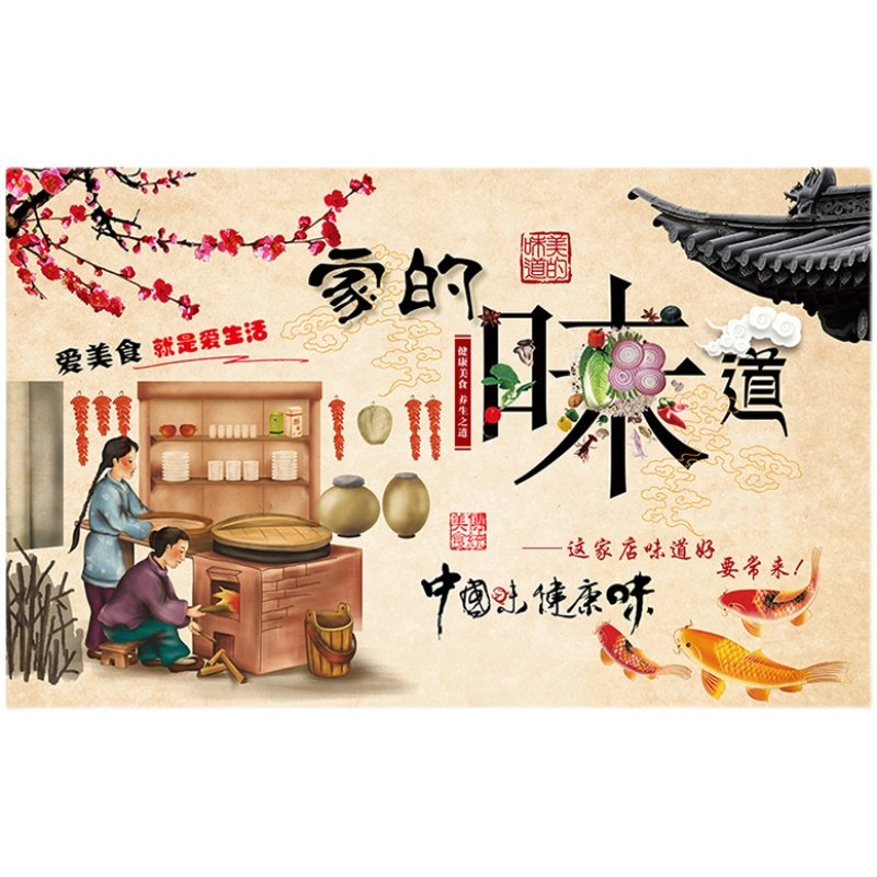 餐饮店壁画家的味道农家餐厅墙纸