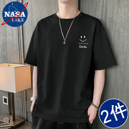 NASA潮牌纯棉短袖男士夏季新款宽松大码休闲五分半袖百搭圆领T恤
