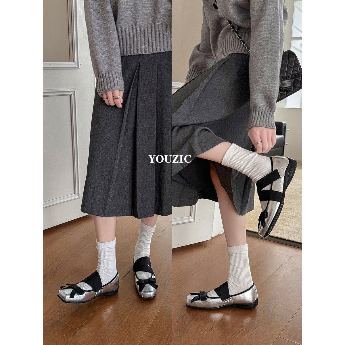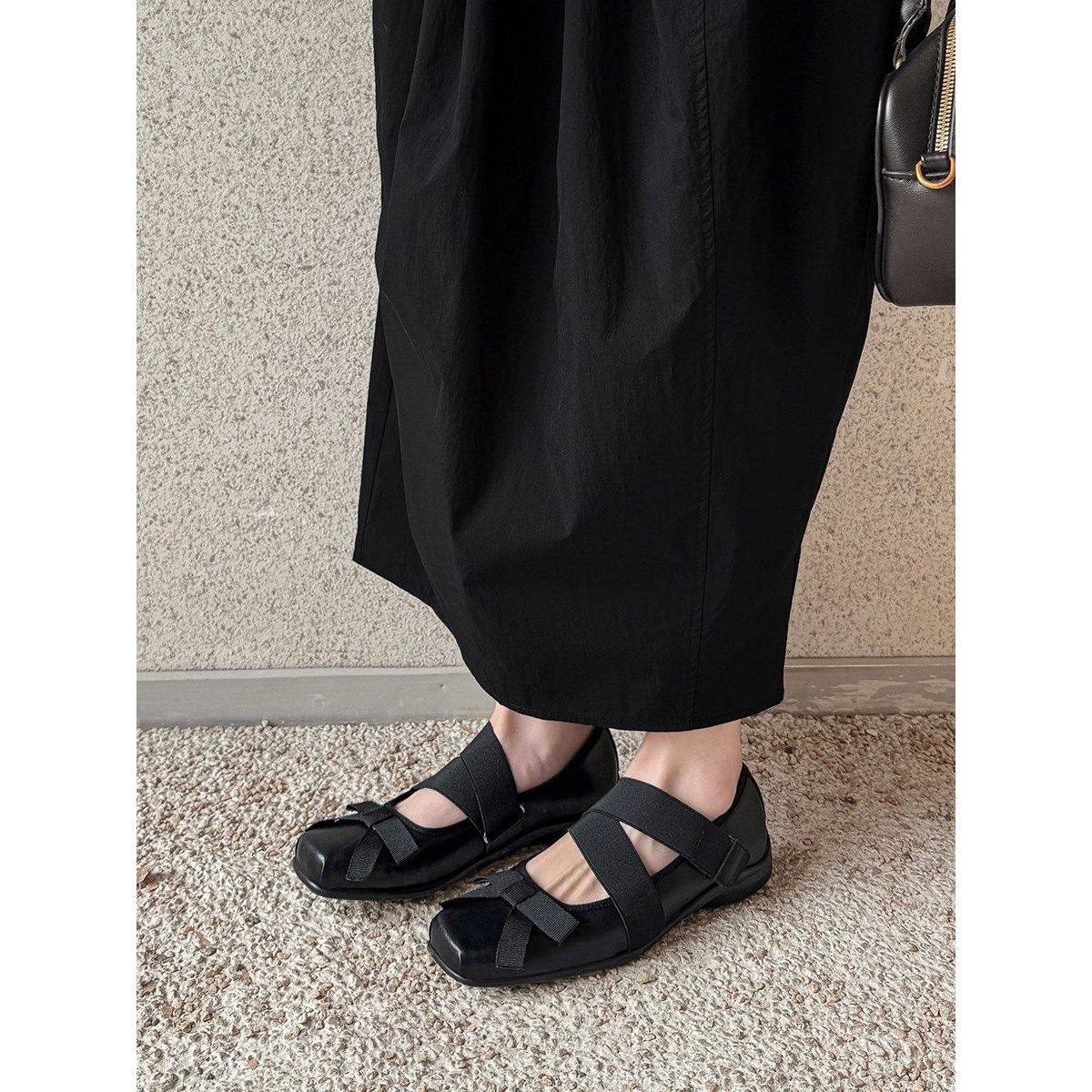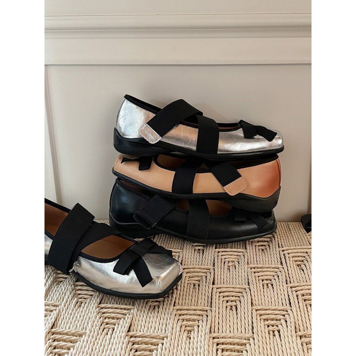 玛丽珍鞋女2026春季新款蝴蝶结真皮方头交叉带芭蕾舞鞋欧洲站女鞋