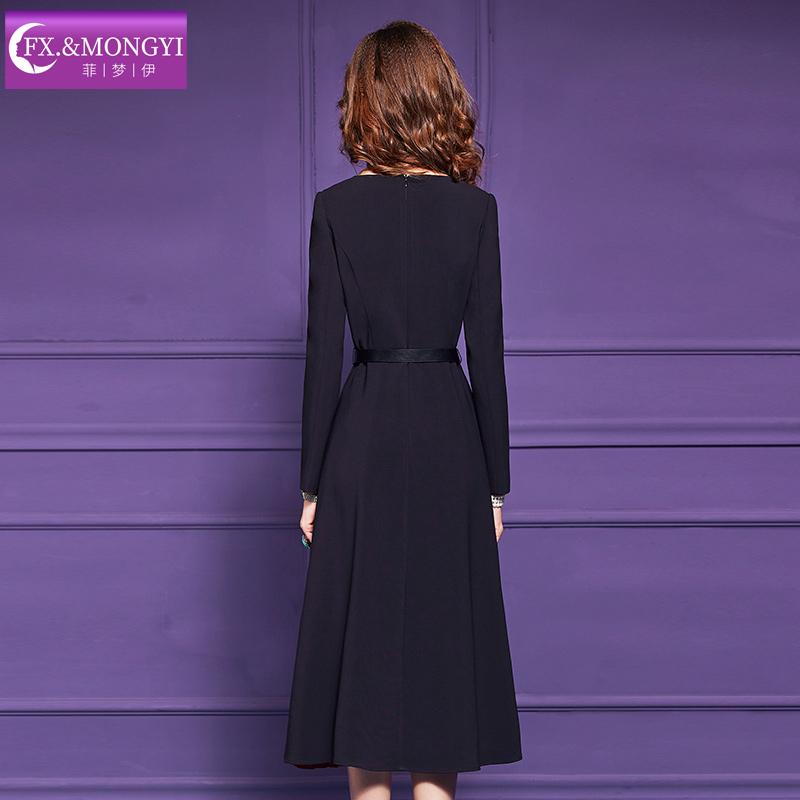菲梦伊撞色设计感连衣裙女长袖秋季新款高端轻奢名媛风假两件裙子