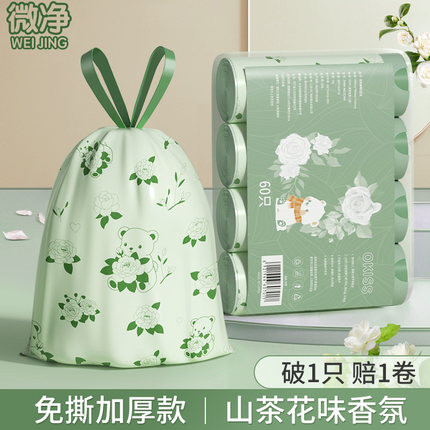 微净【山茶花垃圾袋】加厚家用手提式免撕特厚厨房学生宿舍特厚A