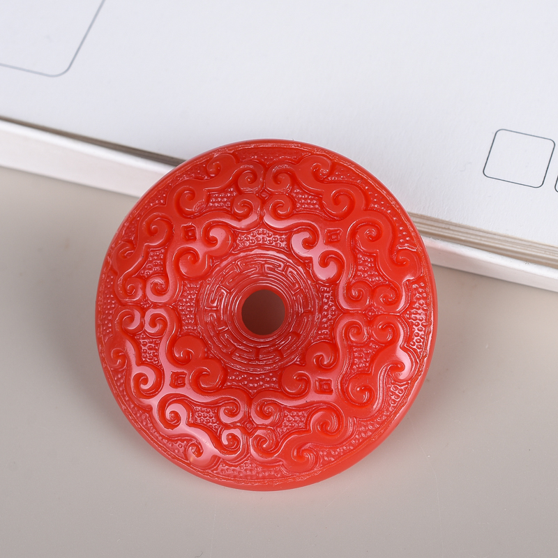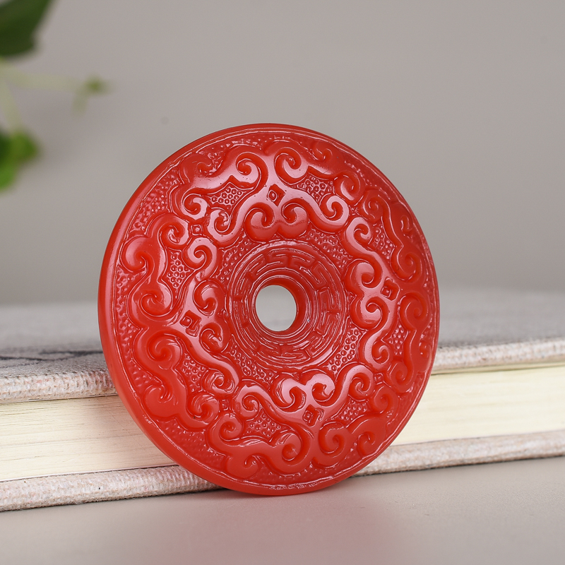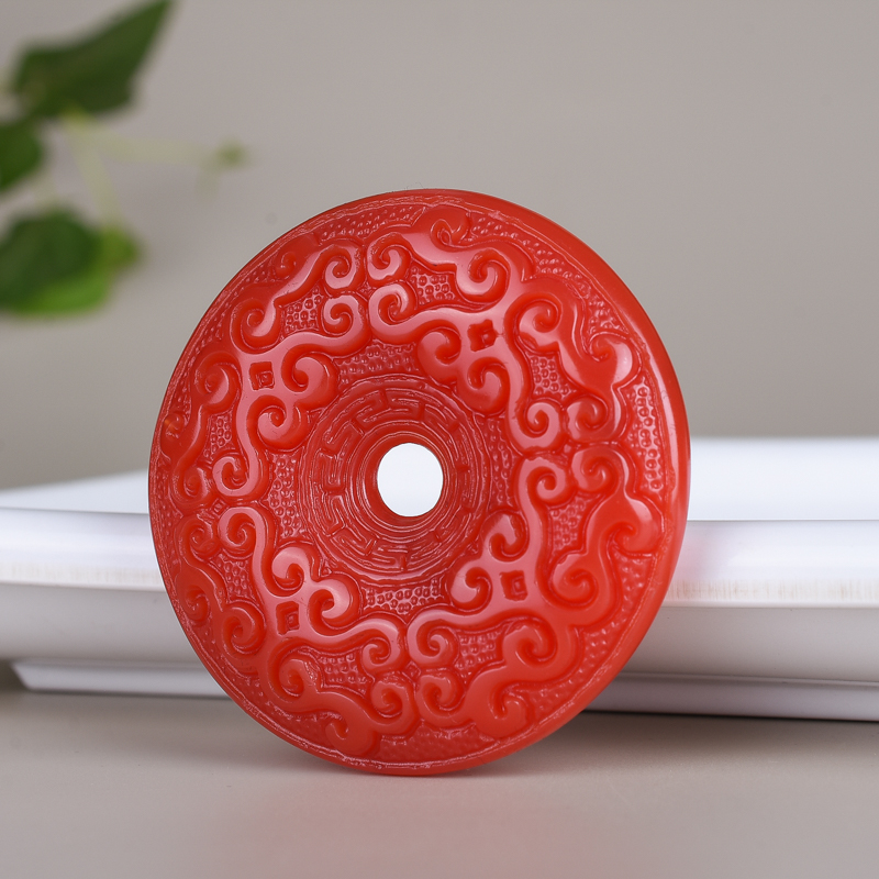 天然新疆和田玉红玉玉龙扣男女款鸡血玉佩玉环双面回纹平安扣项链