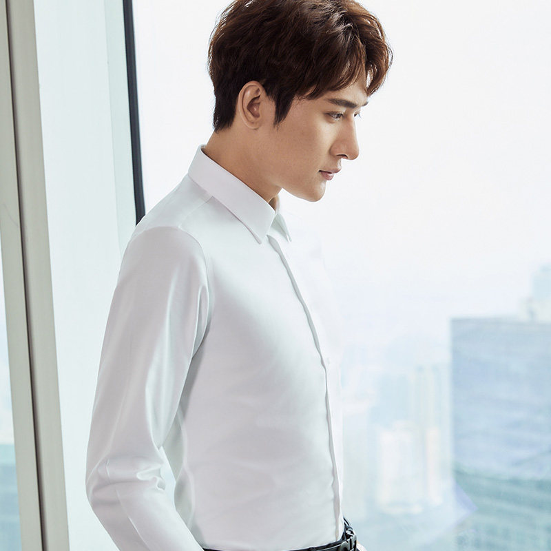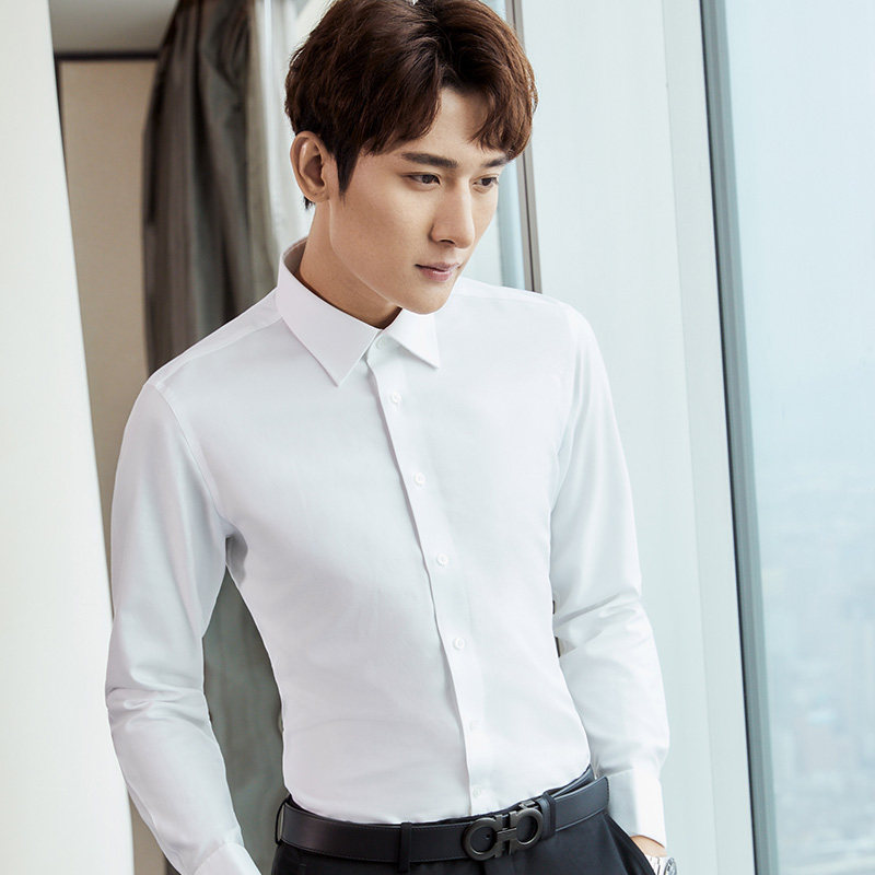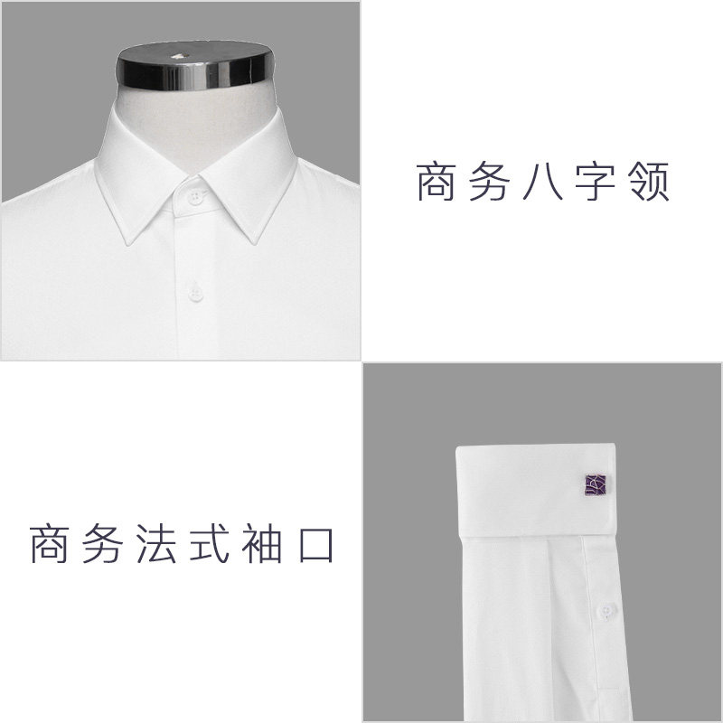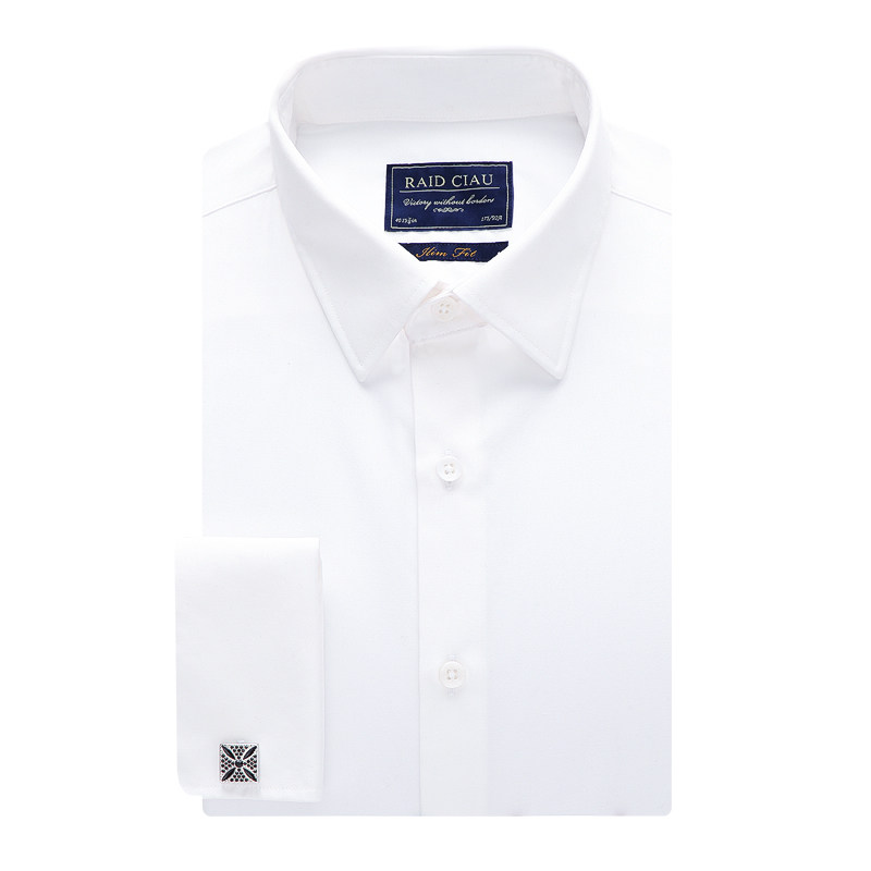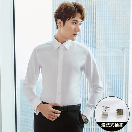法式衬衫男长袖修身加绒新郎结婚商务袖扣款立领男士白色正装衬衣
