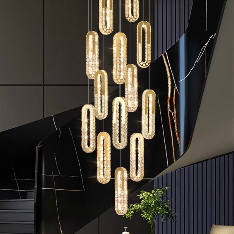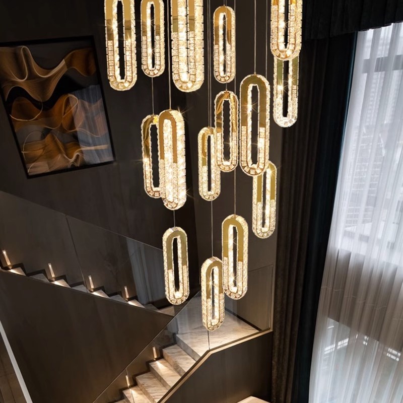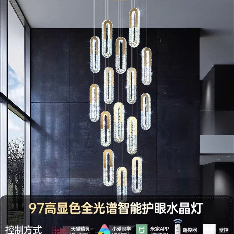 楼梯吊灯挑高中空复式楼别墅客厅水晶吊灯现代异性楼梯大气水晶灯