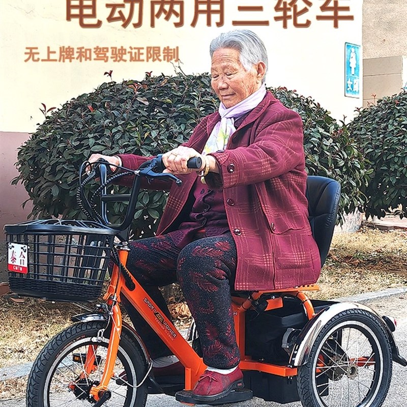 新款脚蹬两用电动三轮车老年助力代步车老人脚踩轻便成人助力单车