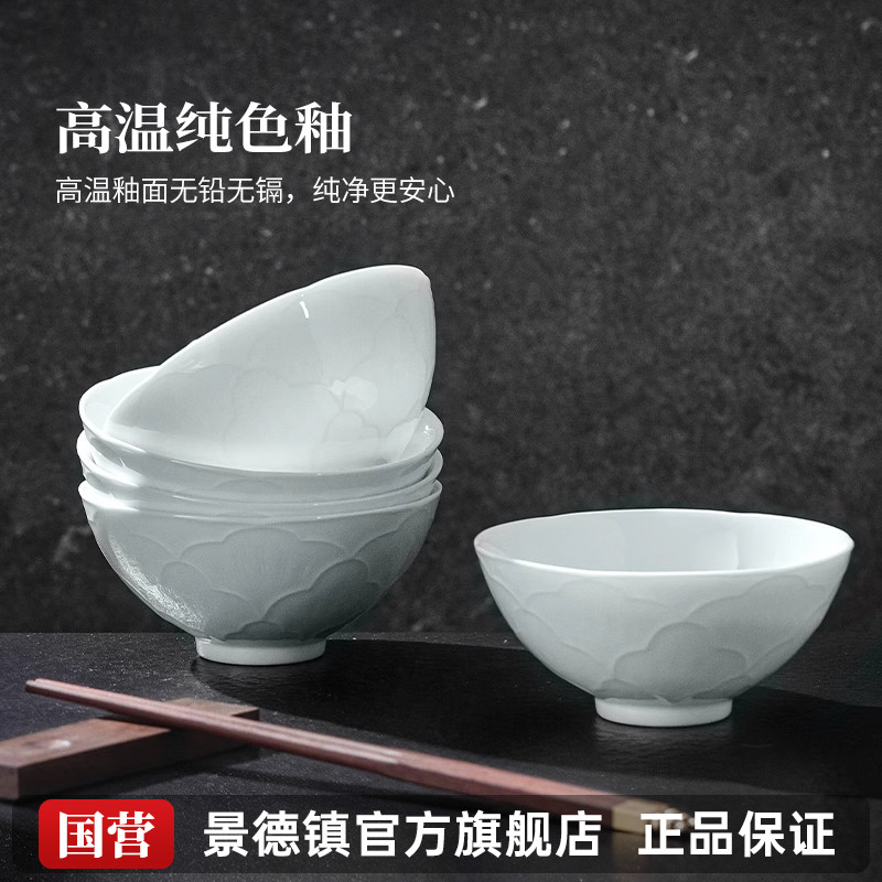 景德镇官方陶瓷中国色浮雕餐具新款5英寸碗高级泡面碗微波炉个人