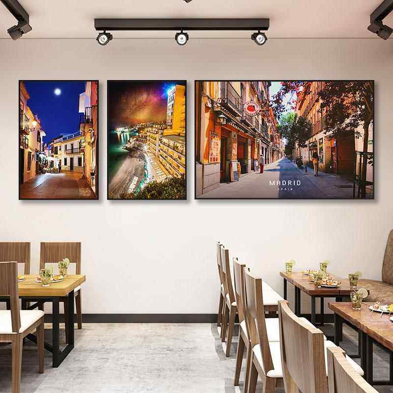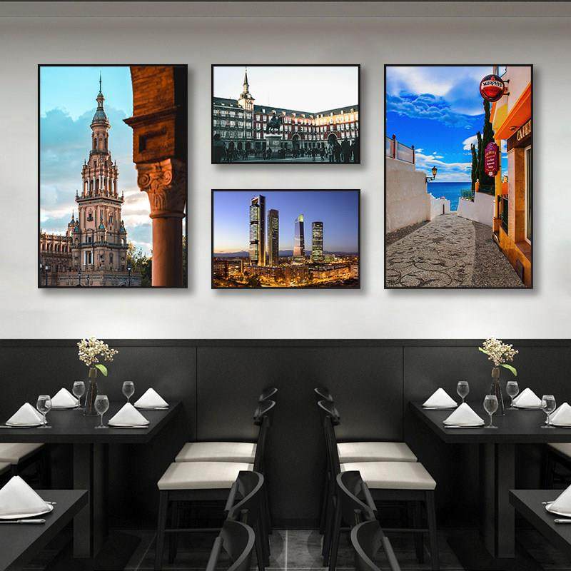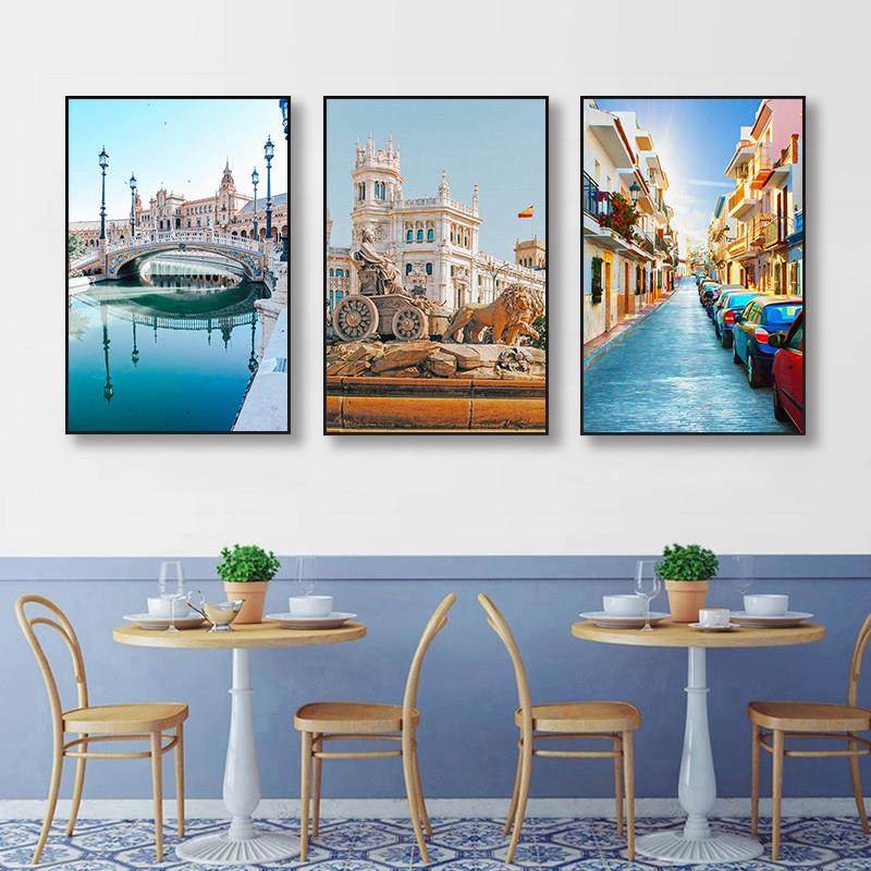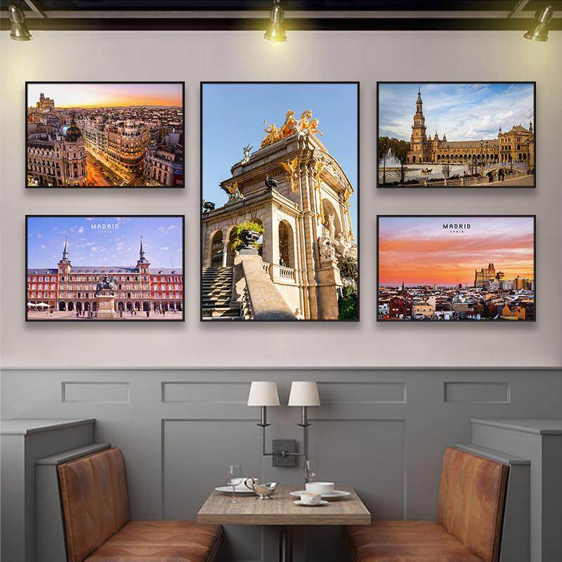 欧洲西餐厅城市马德里大厦咖啡馆街景装饰画墙挂画风景西班牙
