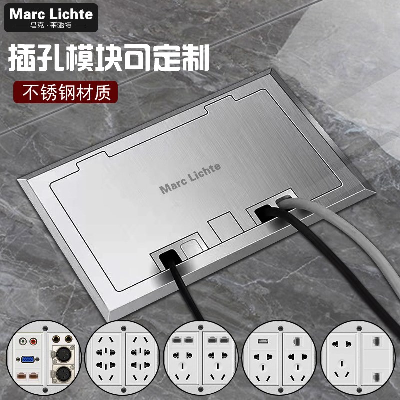 200型开启式隐形超薄地板插座隐藏式多功能五孔网络音频高清地插