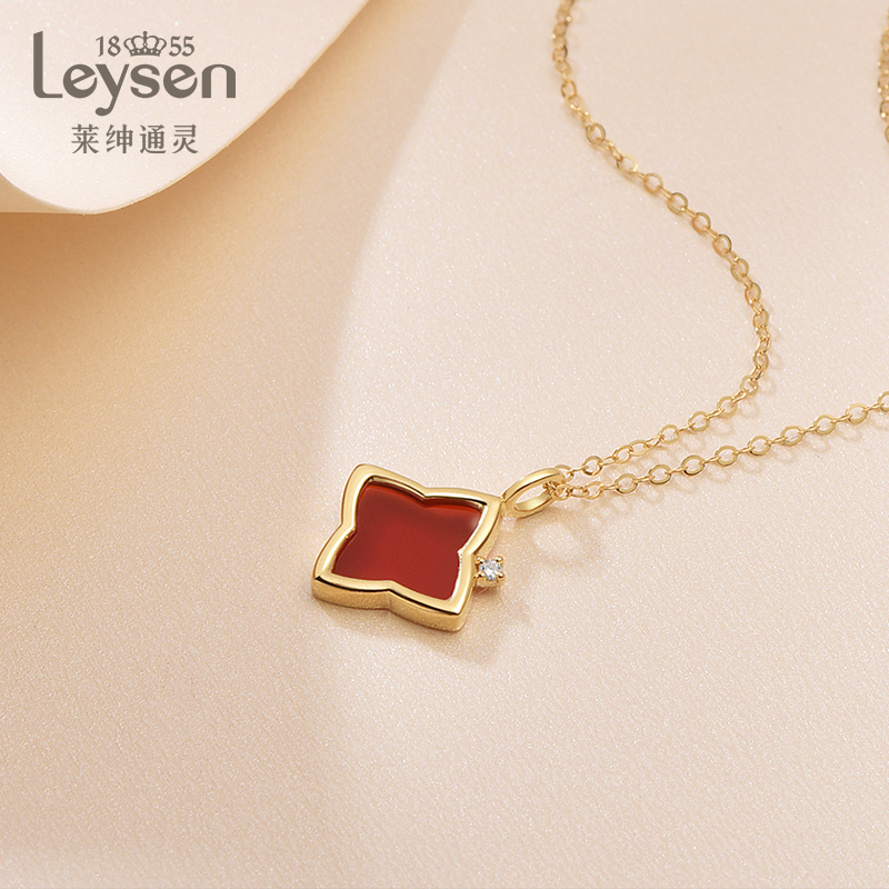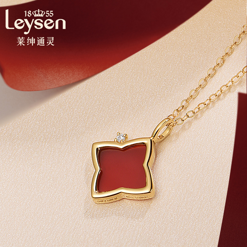 莱绅通灵珠宝 红玛瑙 K金钻石吊坠 HER她吊坠女