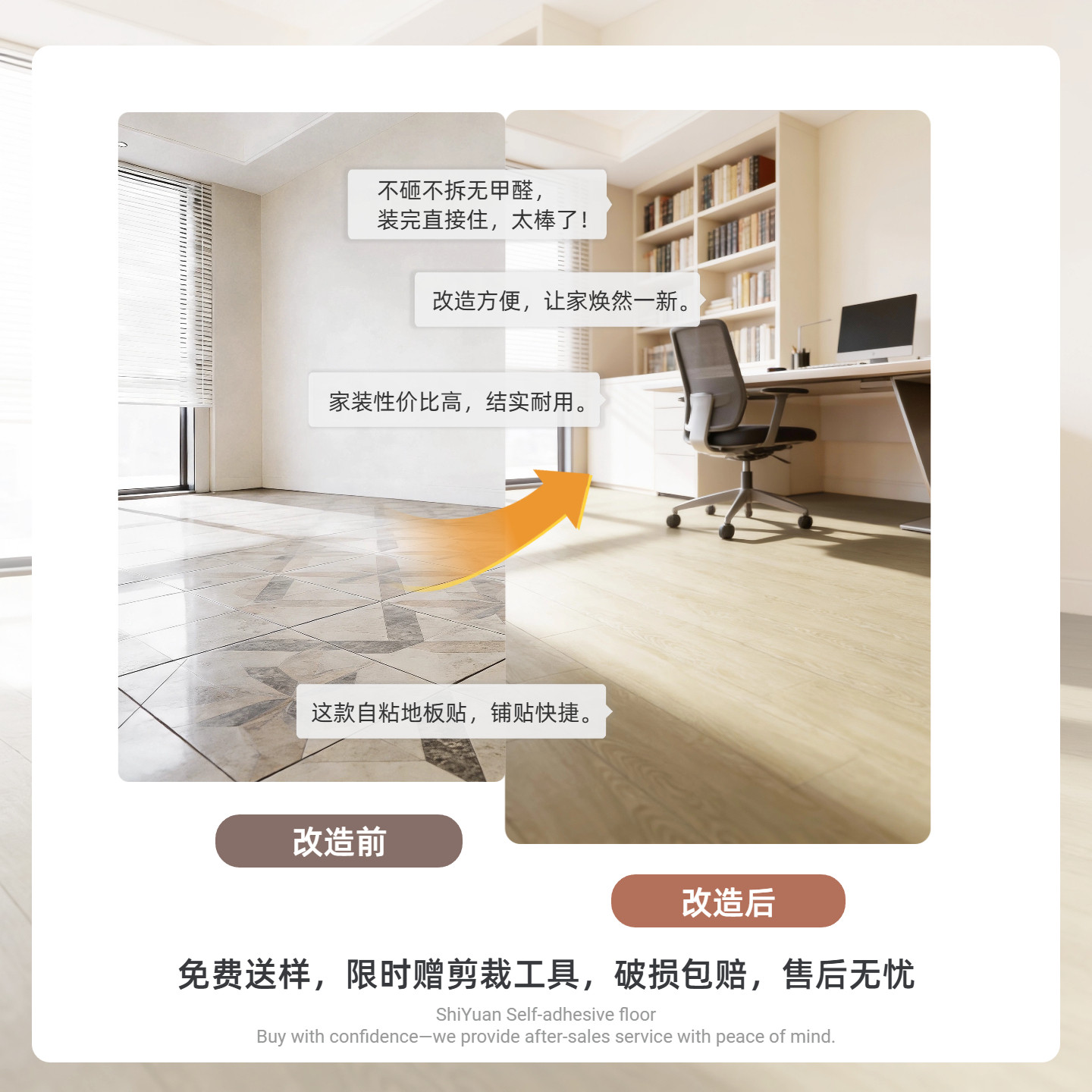PVC自粘地板贴加厚耐磨防水防滑家用翻新改造自粘式木纹地板贴纸