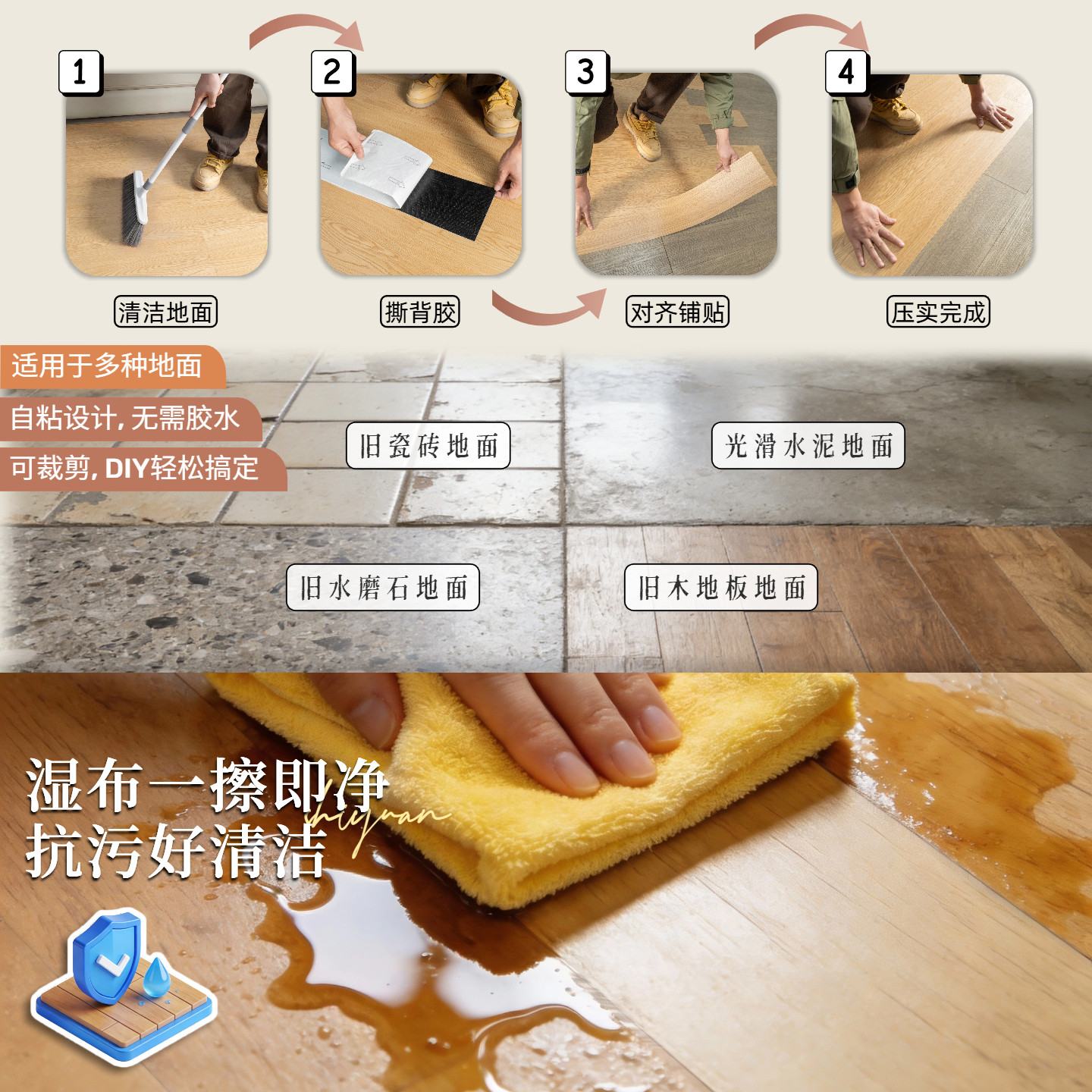 加厚耐磨自粘地板贴防水防滑家用