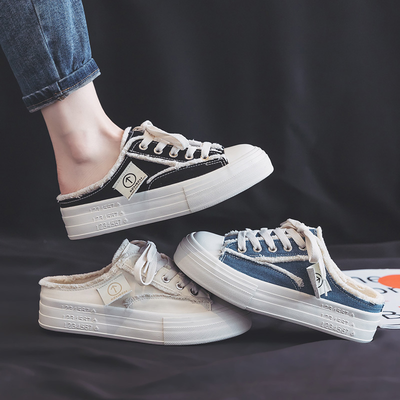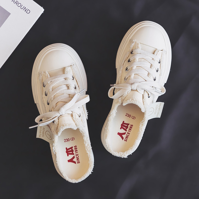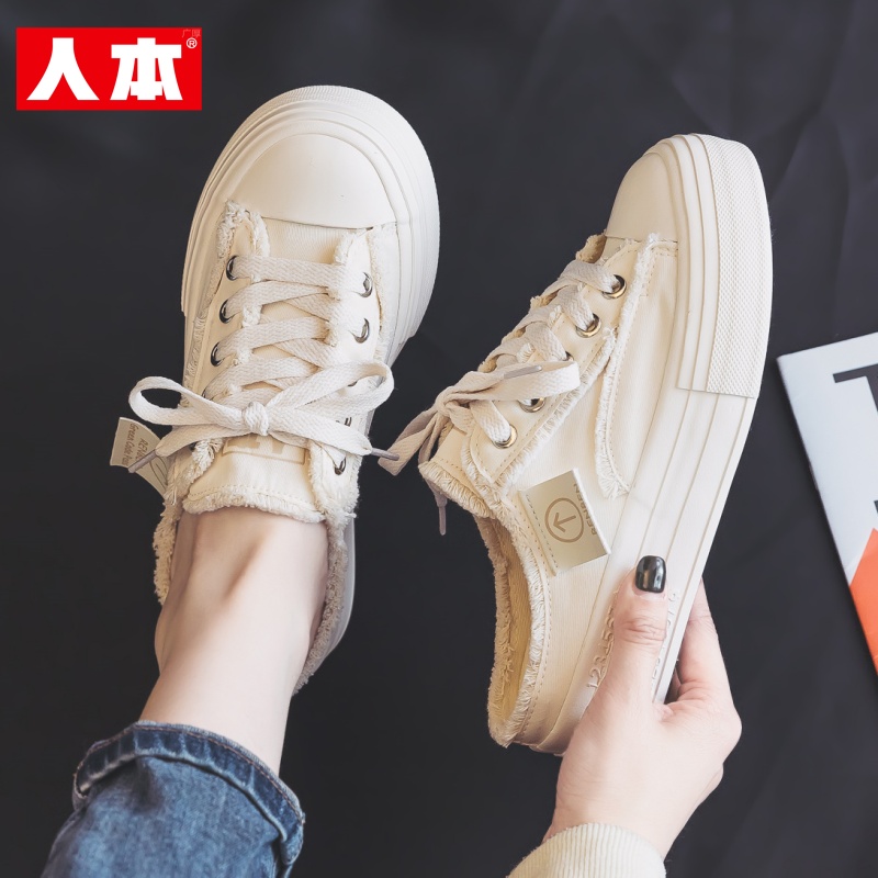 人本小白鞋女2025春夏季新款两穿一脚蹬女鞋百搭板鞋半拖帆布鞋子