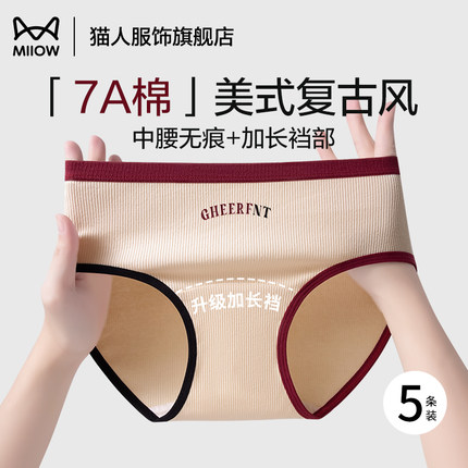 猫人美式内裤女生100%全棉抑菌加长裆2025新款中腰纯棉三角裤女士