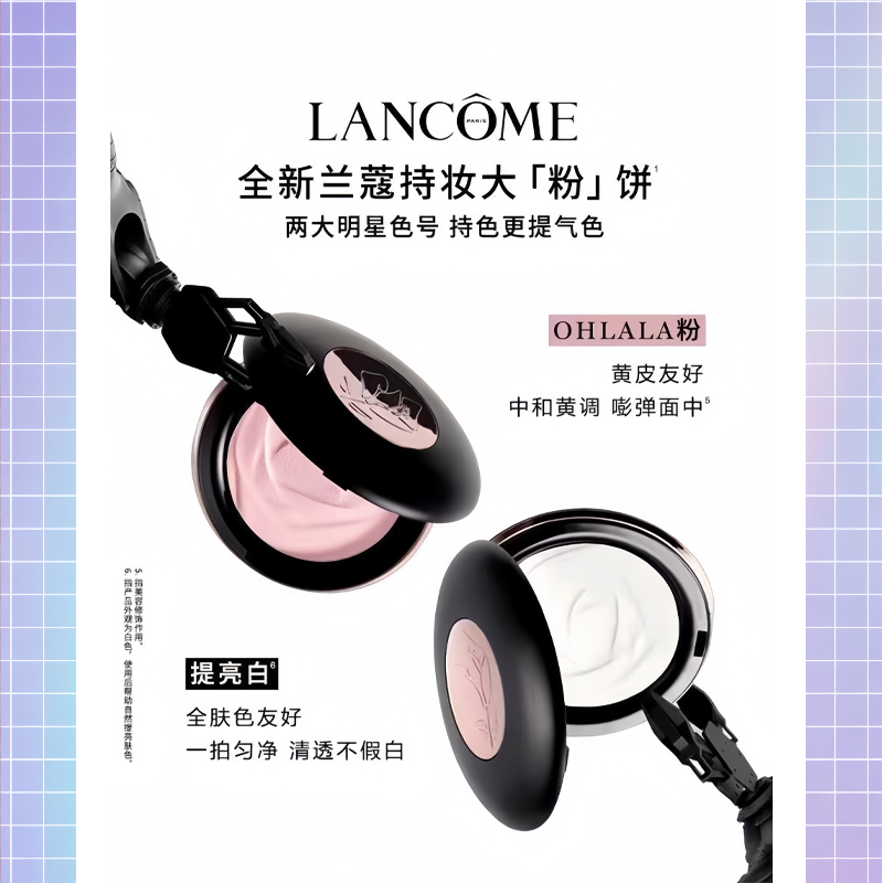 Lancome兰蔻小飞碟定妆粉饼小样持妆柔焦ohlala持久控油散粉试色