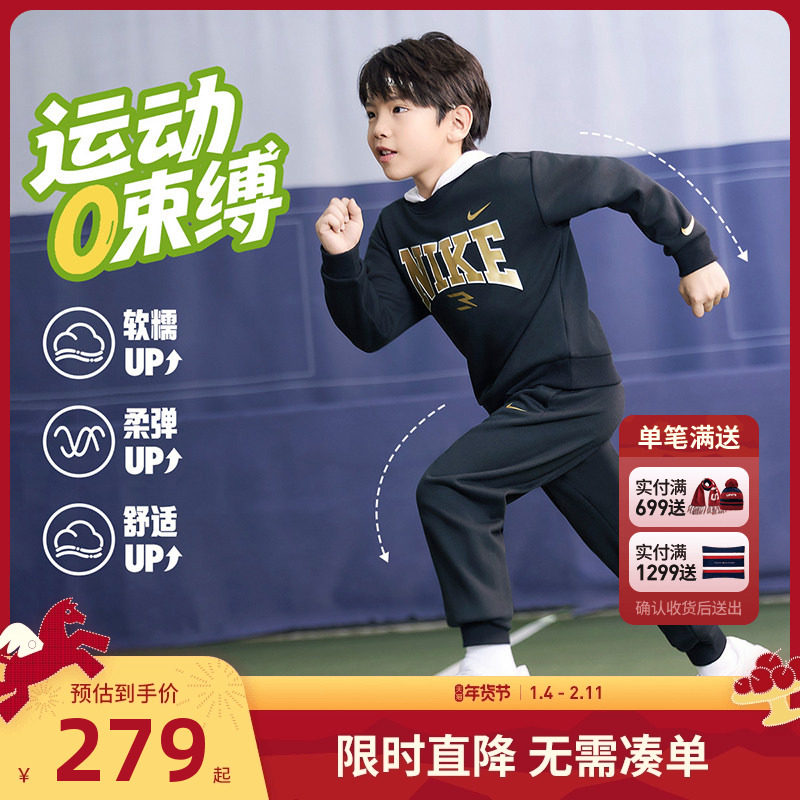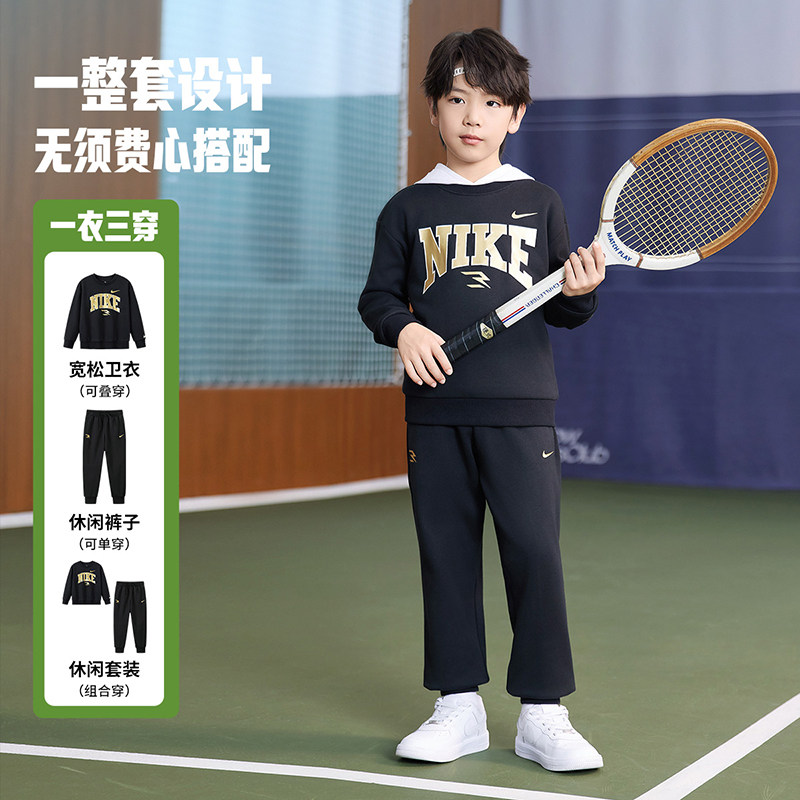 Nike 3brand童装儿童卫衣套装加绒男童长袖长裤秋冬季新款休闲装