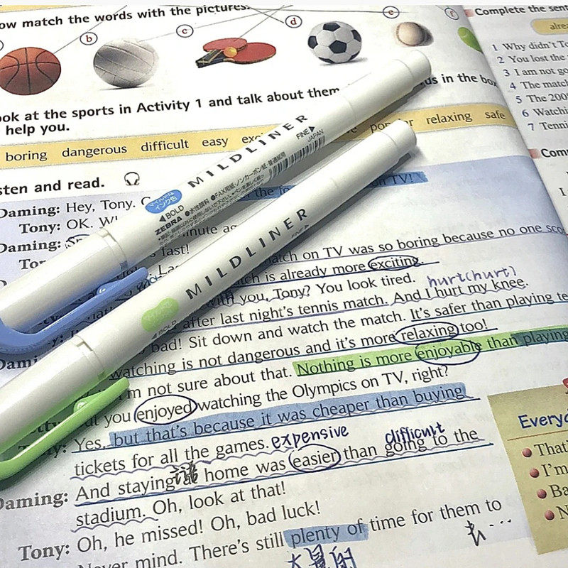 日本zebra斑马荧光笔淡色系双头彩色标记笔不晕染记号笔软头WKT7学生用手帐做笔记划重点用荧光笔新色大容量
