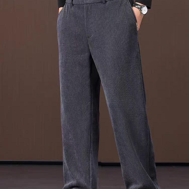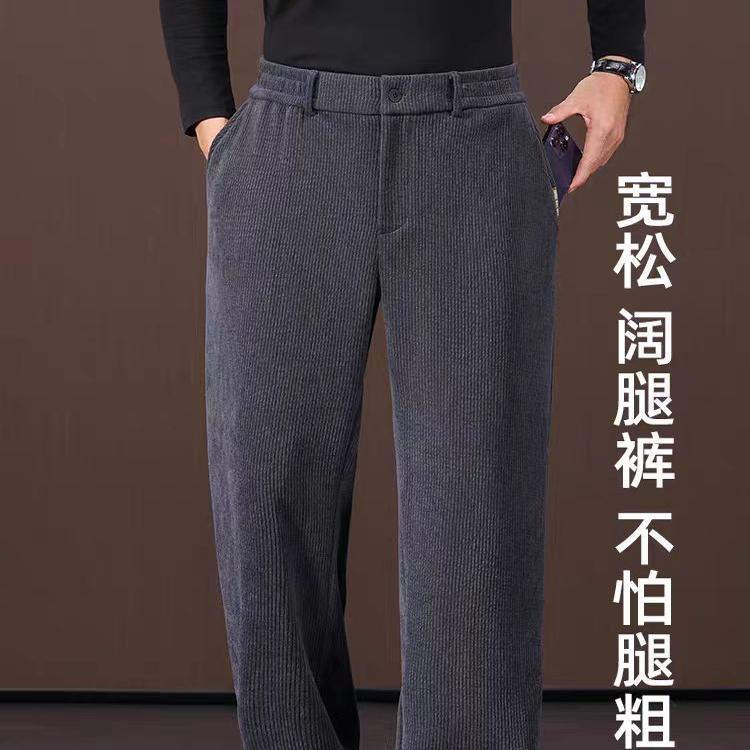 高级感雪尼尔休闲裤男士秋冬加绒加厚中年爸爸装运动宽松阔腿长裤