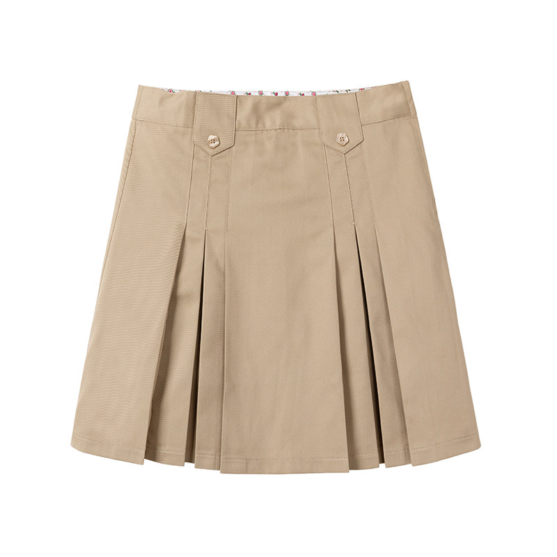 伊顿纪德防蚊虫纱卡藏青短裙 2022新款女童卡其半身裙(无内衬)