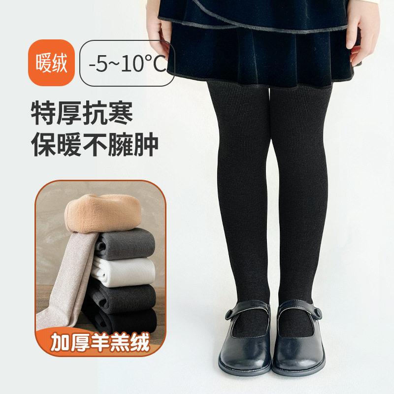 女童连袜裤秋冬洋气宝宝保暖加厚加绒打底裤儿童一体厚羊羔绒裤袜
