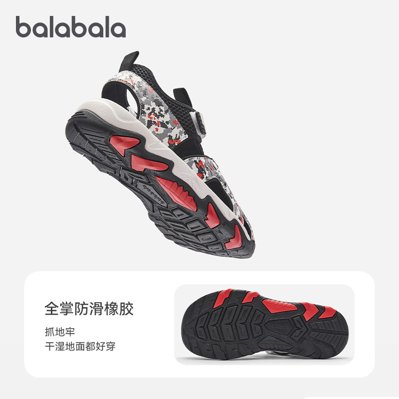 巴拉男童运动凉鞋儿童包头鞋镂空
