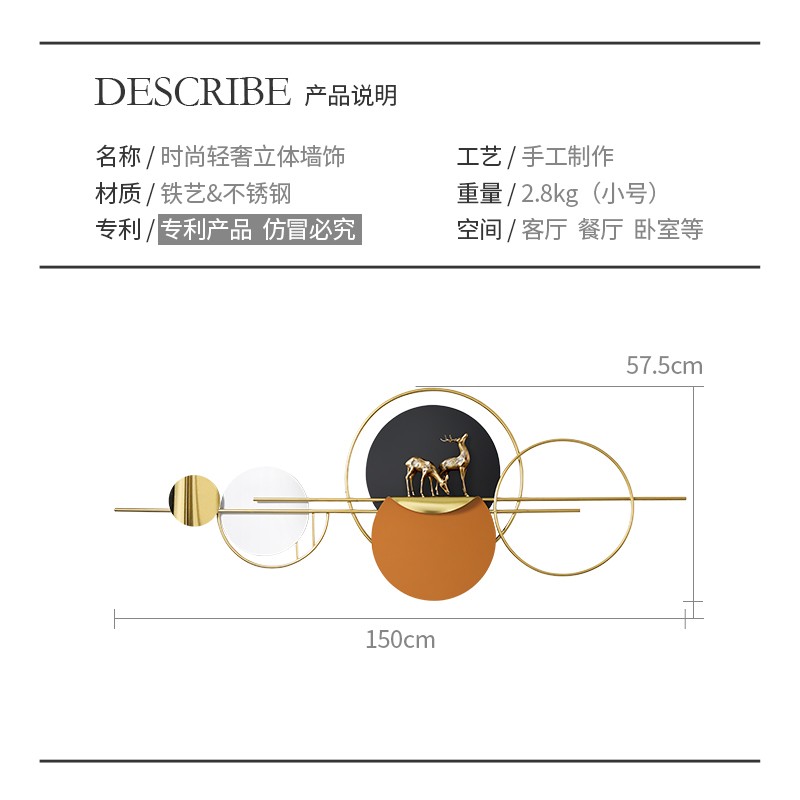 寓意好沙发背景墙装饰画现代简约麋鹿壁画客厅挂画轻奢立体床头画