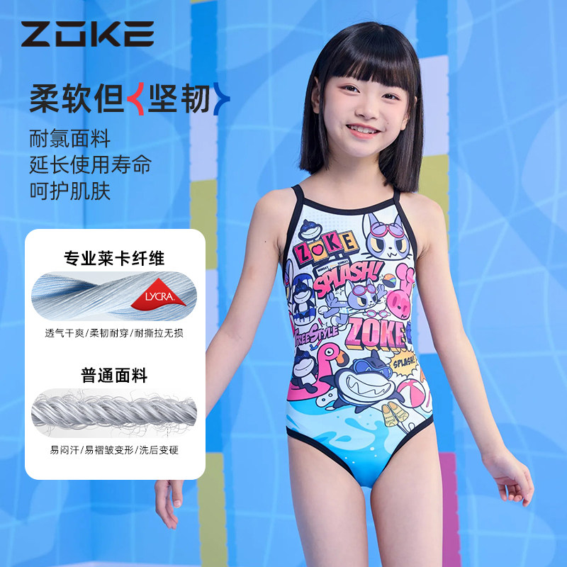 zoke洲克儿童泳衣女童中大童2025新款连体三角女孩专业训练游泳衣
