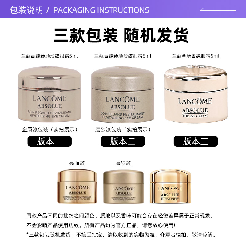 【自营】Lancome/兰蔻全新菁纯眼霜5ml*3玻色因保湿修护紧致滋润