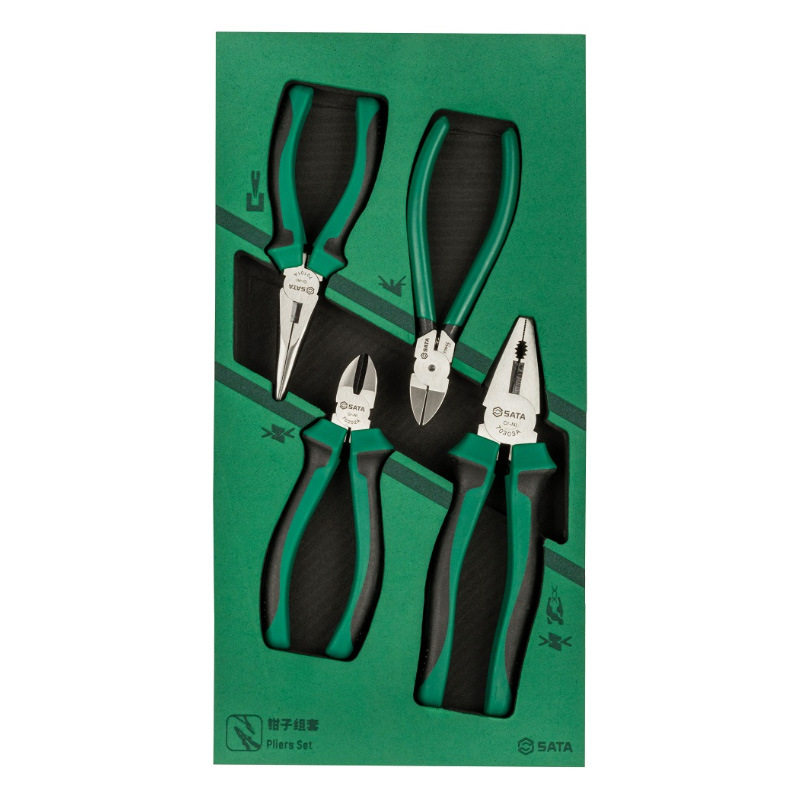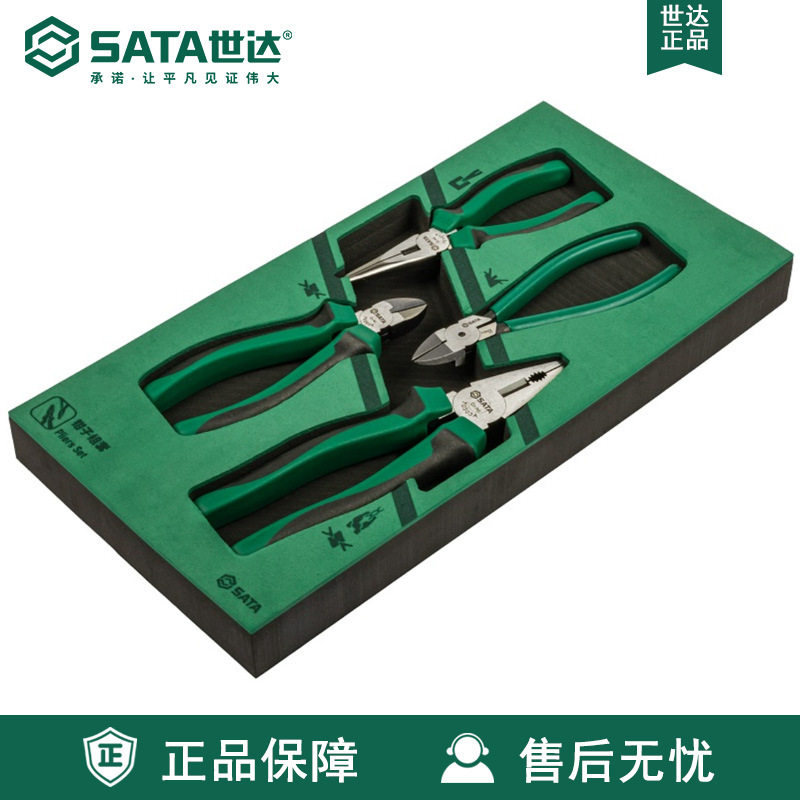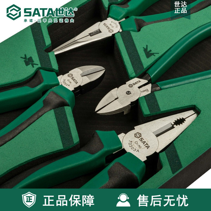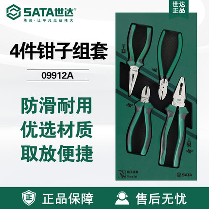 Sata世达工具4件钳子组套09912A钢丝钳老虎钳尖嘴斜嘴水口钳套装
