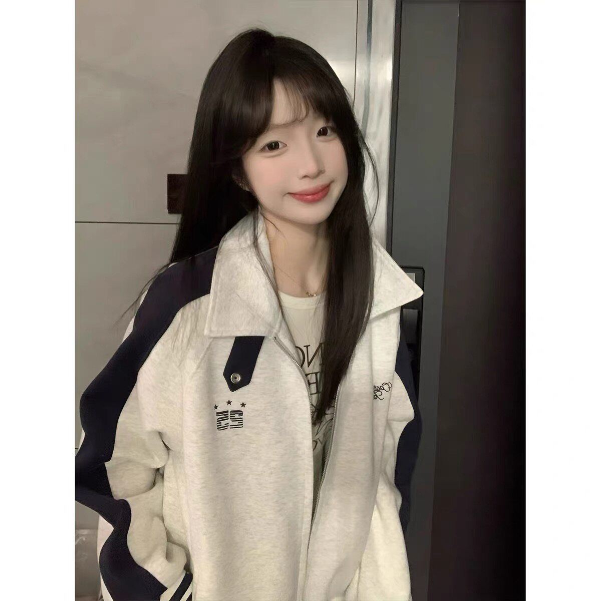 美式潮牌撞色立领棒球服外套女春秋2025款夹克学院风慵懒拉链卫衣