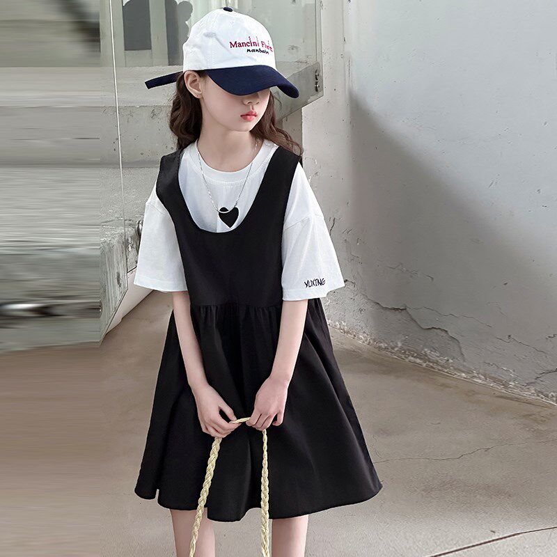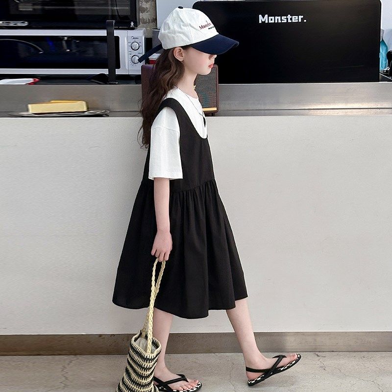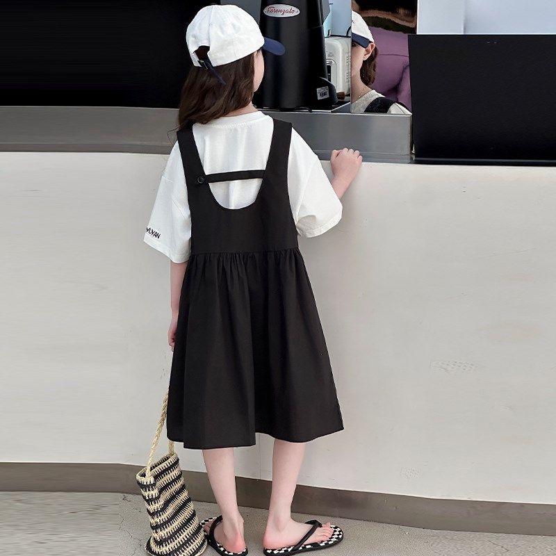 女童连衣裙夏季2025新款大童洋气短袖背带裙儿童夏装韩版裙子套装