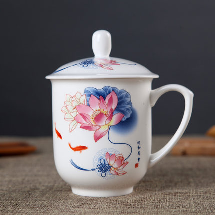 洁升陶瓷茶杯 景德镇商务茶杯骨瓷办公杯 会议杯包邮可Logo定制
