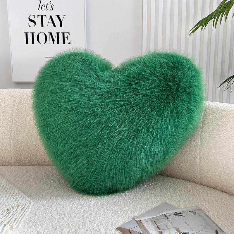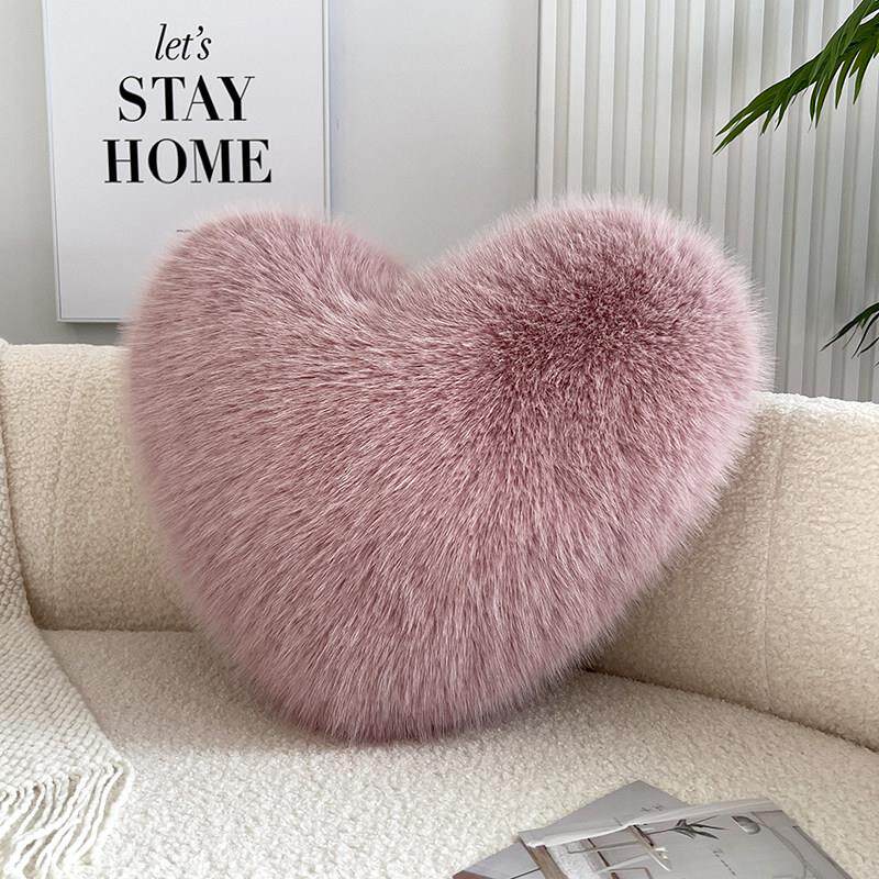 米黄色爱心形抱枕彷狐狸毛可爱长毛绒女生沙发客厅腰靠垫生日礼物