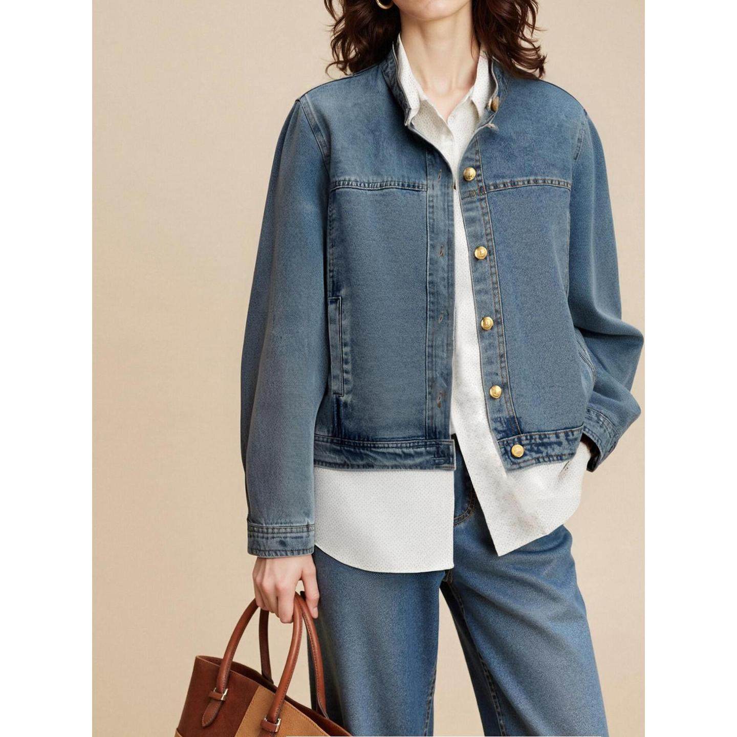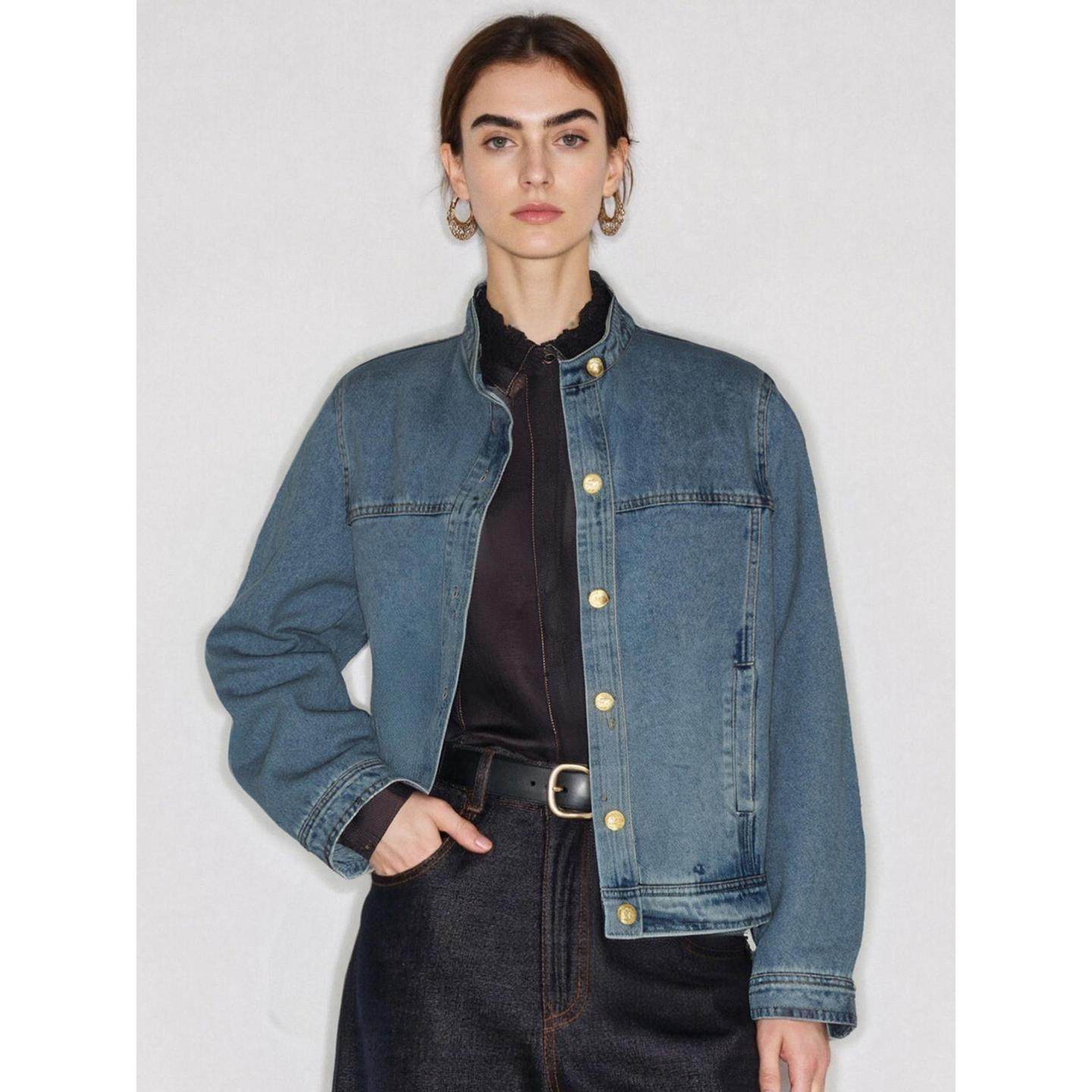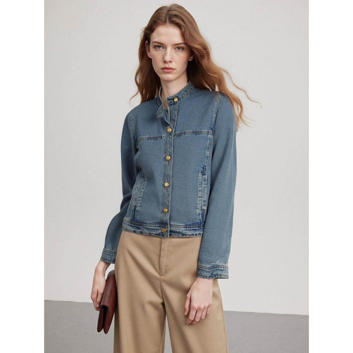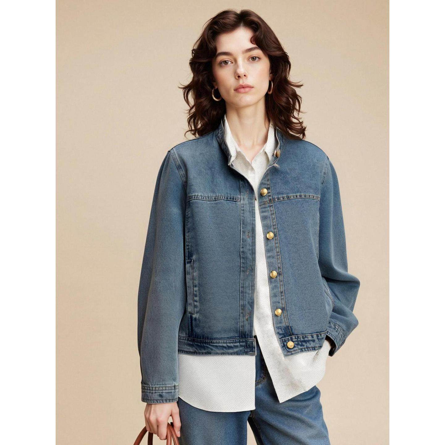 Basic House/百家好美式短款牛仔外套女2026春季新款宽松立领上衣