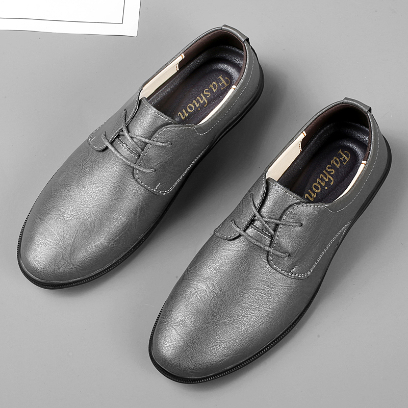 男鞋商务皮鞋正装休闲鞋春季低帮系带牛皮面平底大码绅士单鞋职场