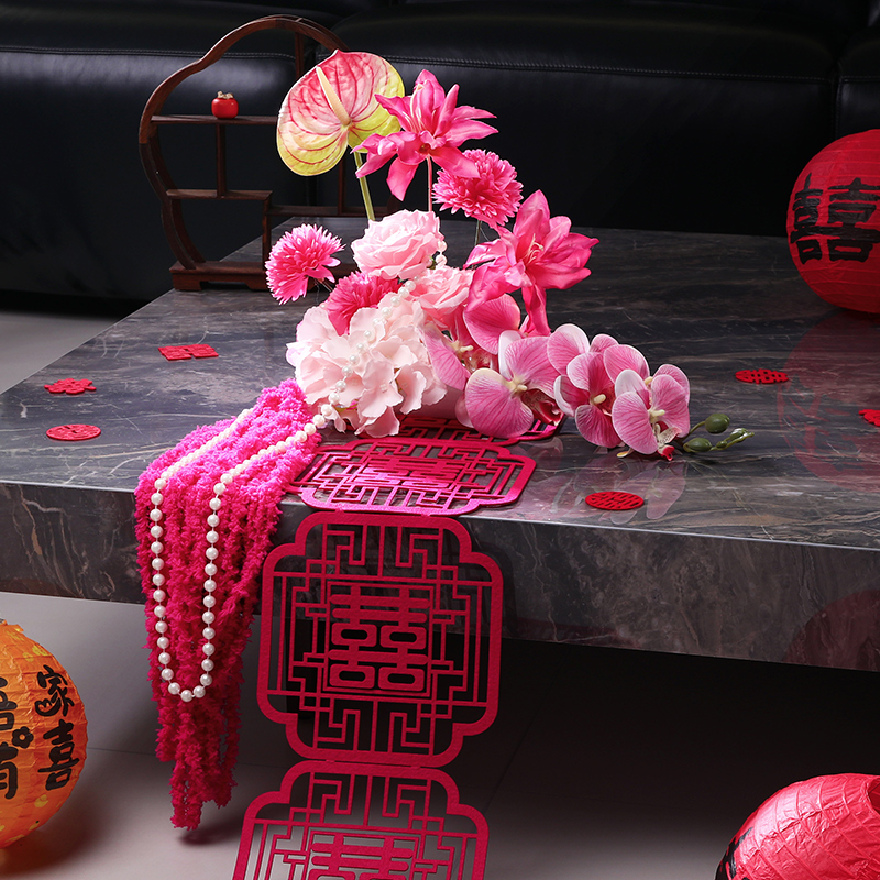 婚房布置婚庆喜字花篮仿真花客厅卧室订婚用品结婚花艺装饰摆件