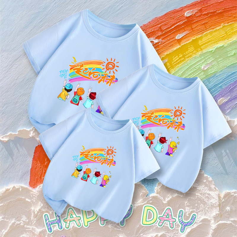 亲子装t恤一家三四口夏装母子女男童短袖纯棉衣服幼儿园运动活动