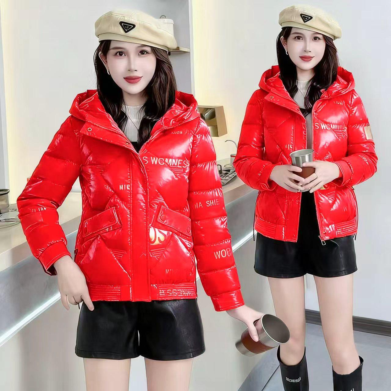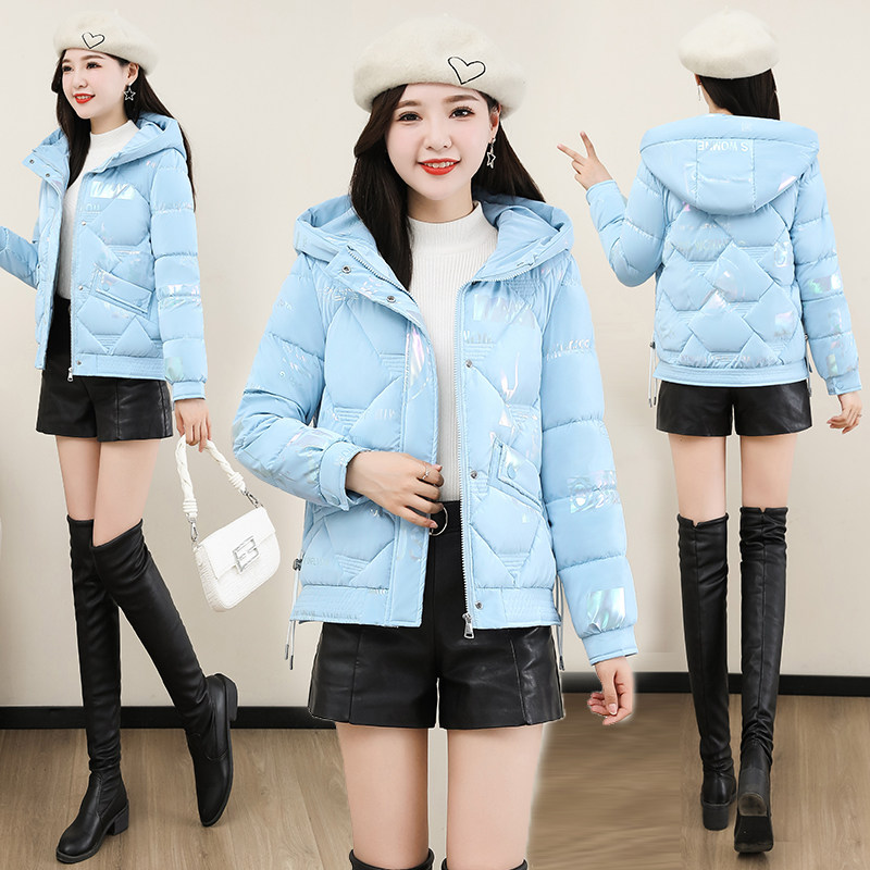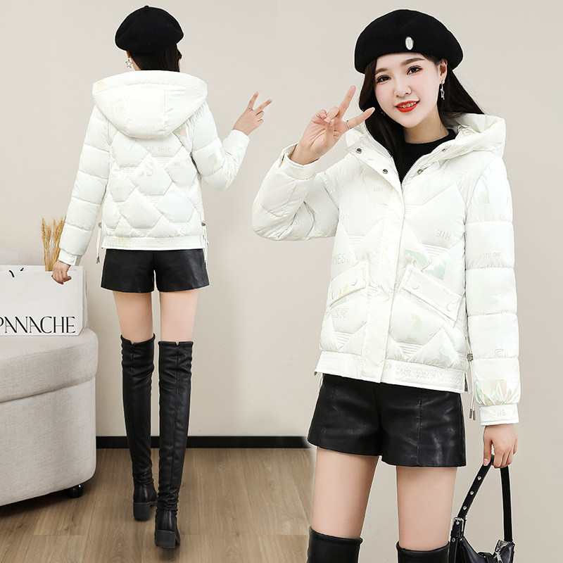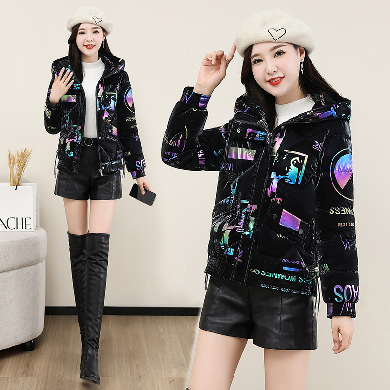 时尚印花亮面免洗棉衣女短款冬季新款加厚保暖百搭棉服棉袄外套潮