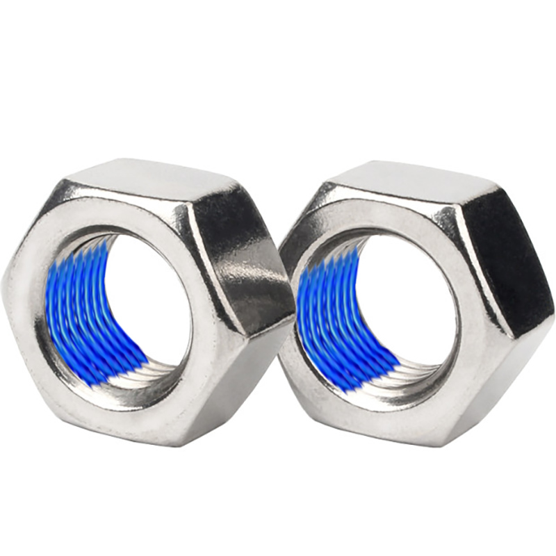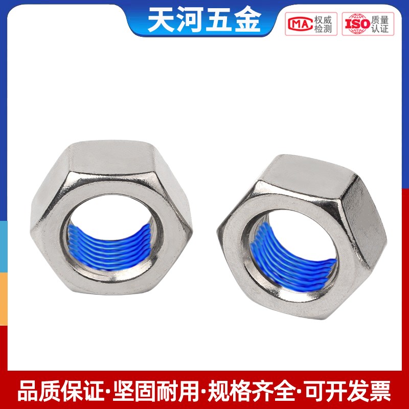 304不锈钢点胶螺母六角螺丝帽涂蓝胶防松动加固抗震防脱落M2-M12