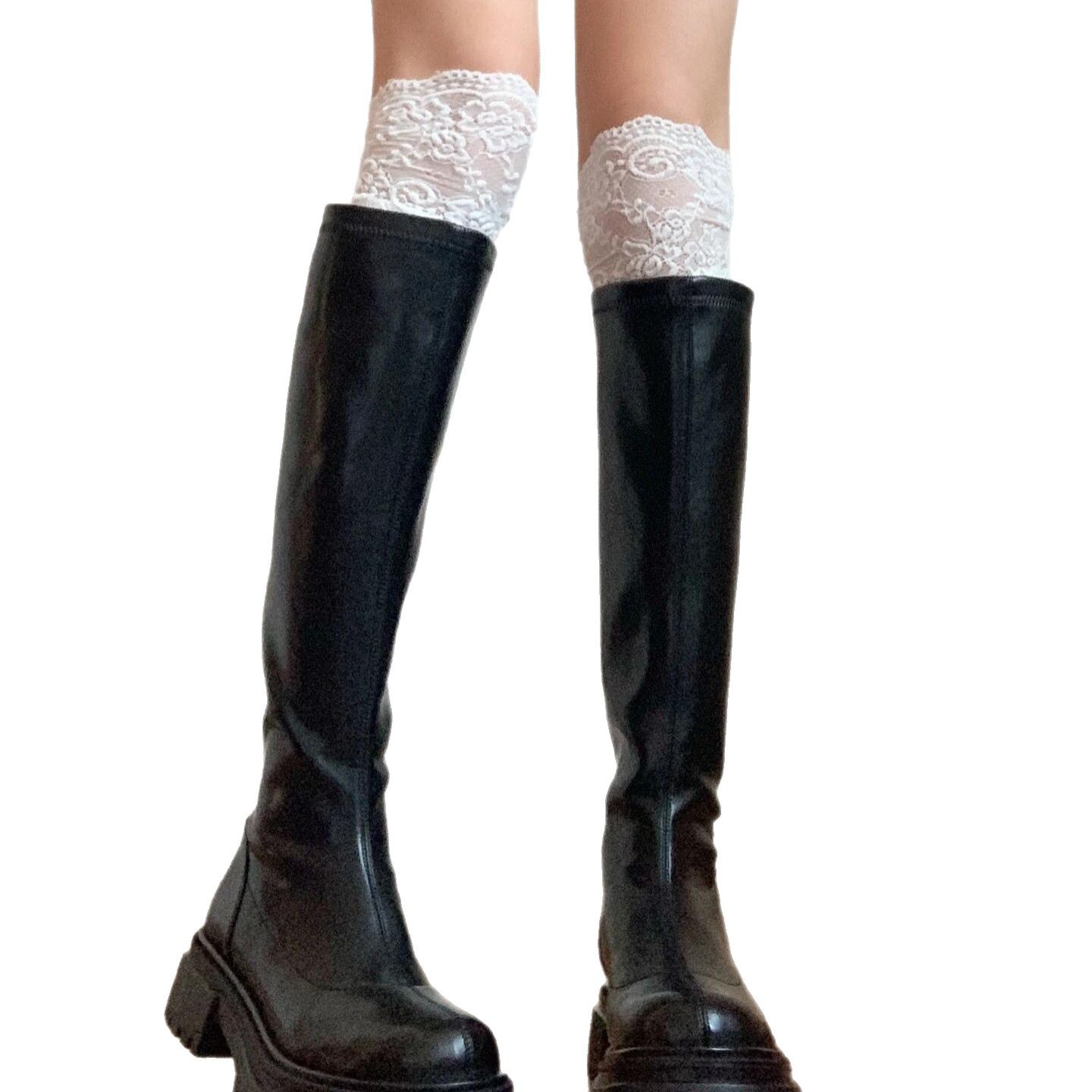 白色长筒袜套袜子女长袜搭配长靴子堆堆袜蕾丝小腿袜腿套夏季薄款